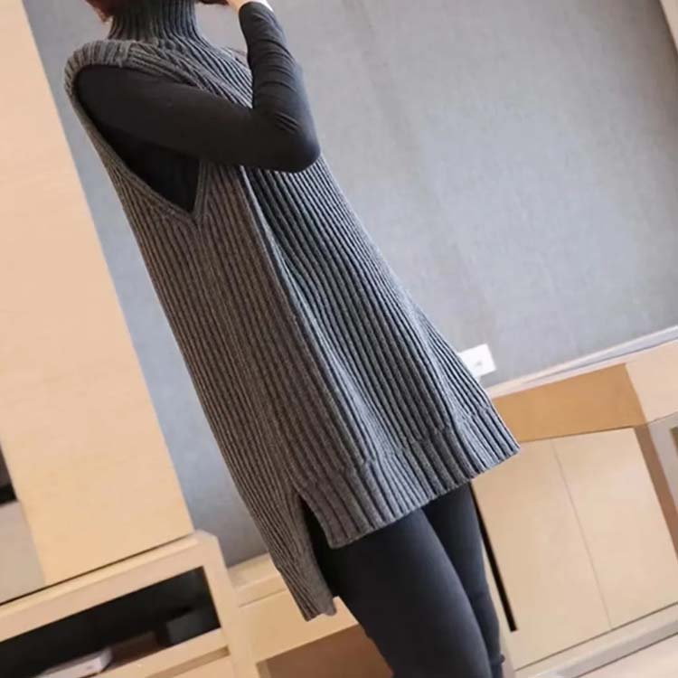 厚手 チュニック丈 タートルネック レ トップス ベスト 豊富 ブラック グレー M L XL 2XL 3XL
