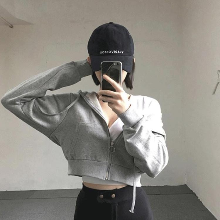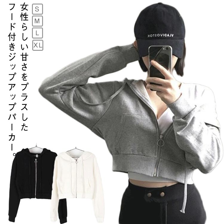 パーカー レディース ショート丈 ジッ トップス パーカー 新作 ホワイト グレー ブラック S M L XL