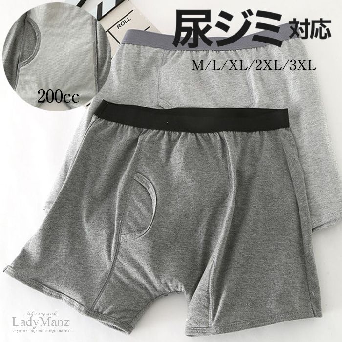 【こんなお悩みありませんか 】トイレ後、尿がズボンにしみないか心配(尿ジミ)そんな「おっかけ漏れ」「軽失禁」「ちょい漏れ」の不安を解消するボクサーパンツがあります。自分でも認めたくないし、他人に気付かれたら考えただけで気が滅入ります。まだまだ男らしい40代、50代、中高年の悩みを解決するために設計されました。吸水力も余裕の200CC。見た目も通常のボクサーパンツと変わりませんので、はじめて着用する方でも、安心して購入いただけます。