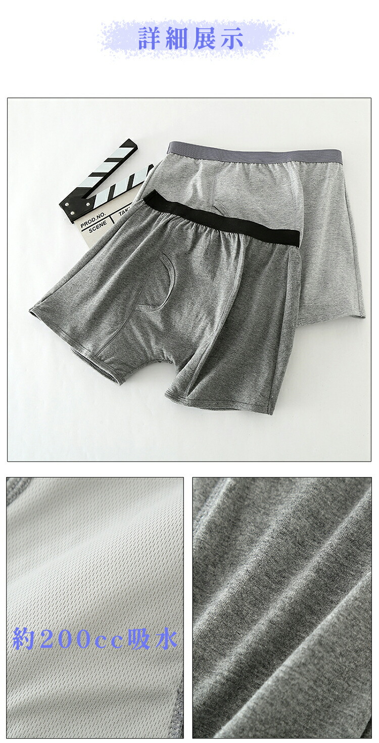 キーワード:失禁ショーツ 男性用失禁パンツ ライトグレーとダークグレー 100-200CC 吸水パンツ 尿漏れパンツ 生理横漏れ防止 重失禁対応 抗菌防臭 介護パンツ 下着 無地 失禁パンツ 尿漏れ対策 失禁対策 ボクサーパンツ おもらし対策 はれパン 200cc 介護 チョイ漏れ 軽失禁 尿モレ メンズ 3XLまで 前後に大きな吸収帯 ちょい漏れ 男性用 前開き 前閉じ パンツ 紳士 失禁 ちょび漏れ シミ 尿漏れ 尿しみ 200ml 吸水 汗ジミ 尿漏れパッド パット 一体型 大容量 おむつ 大きいサイズ Mサイズ Lサイズ XLサイズ LLサイズ 2XLサイズ 3XLサイズ 2Lサイズ 3Lサイズ 4Lサイズ ちょびもれ ちょいもれ お出掛け おむつカバー