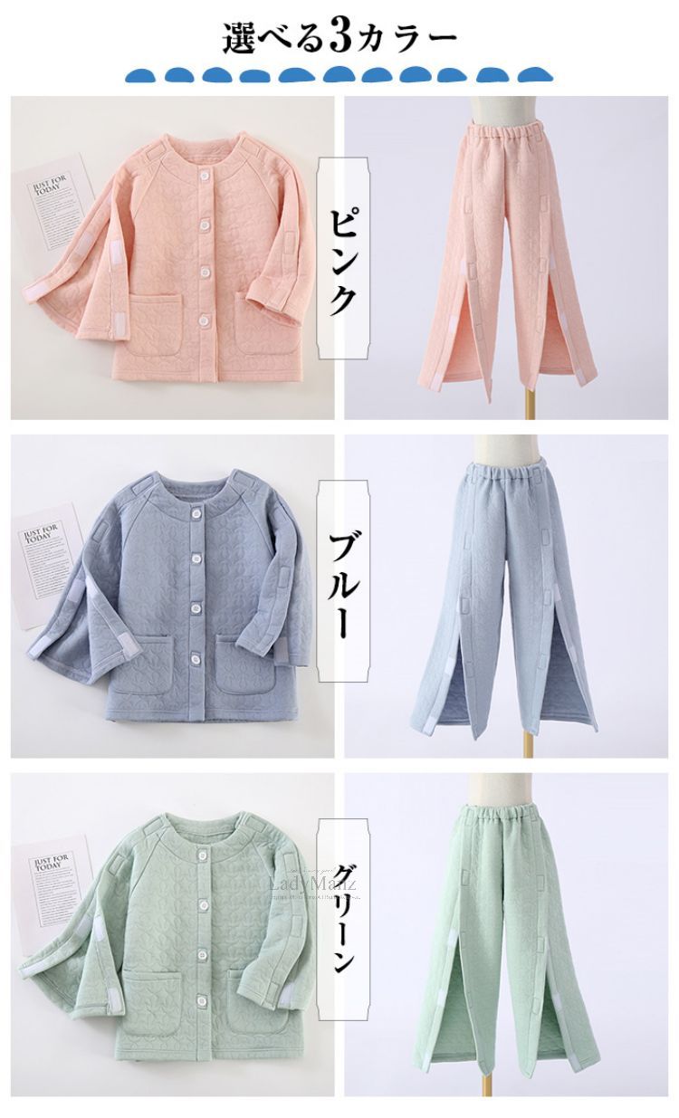 着脱簡単介護用パジャマ 上下セット ト ピンク ブルー グリーン 110 120 130 140 150