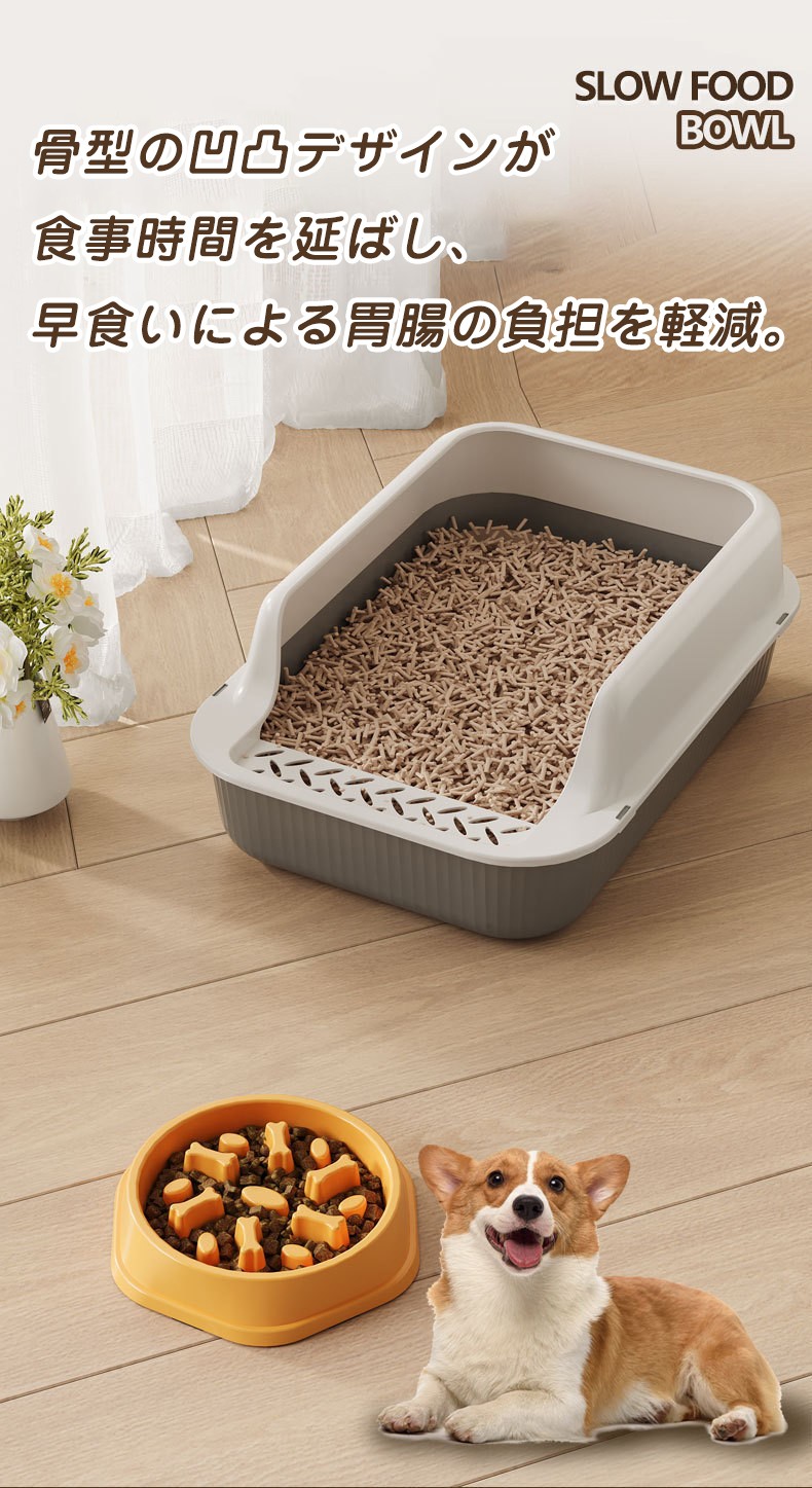 ペット用食器 餌入早食い防止 食器 犬 ブルー グリーン イエロー ピンク グレー