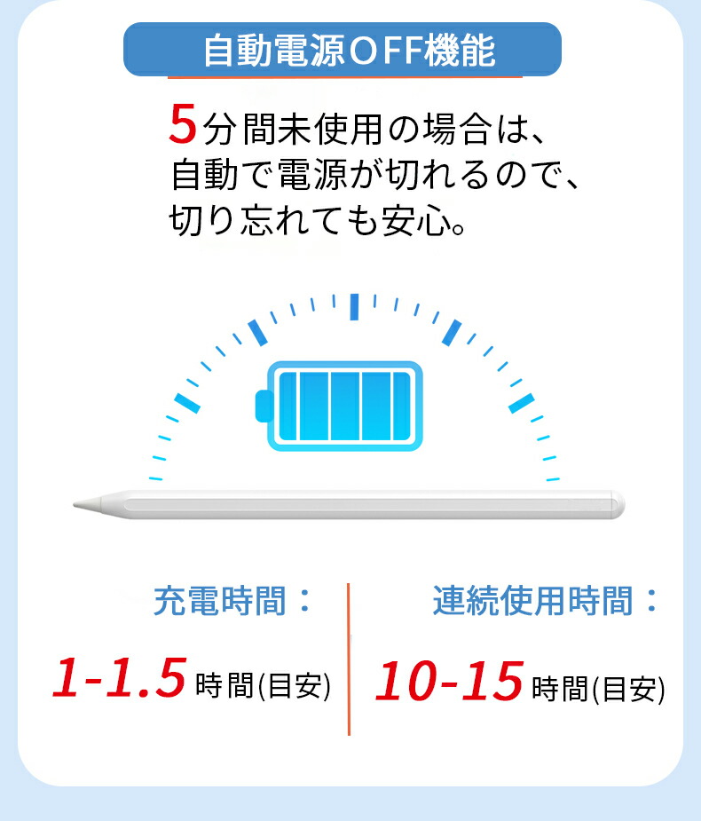 丸みのあるペン先は直径1.0mmと極細で、材質は純正のアップルペンシルと同じPOM素材を採用し、画面に傷つきにくい。本格的なスケッチからちょっとした手書きメモ、ツムツムなどのゲームまでいろいろな用途で大活躍できます。