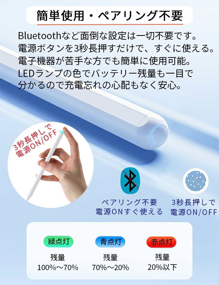 ※ペアリングの目的は充電残量確認のみです、ペンの使用と充電はペアリング設定など一切必要ありません。