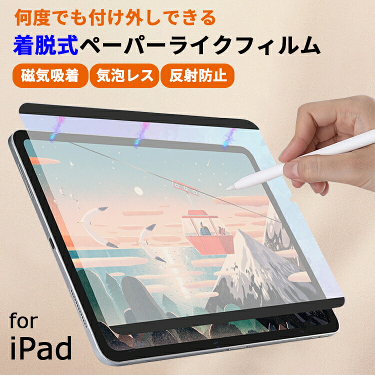 着脱式 ペーパーライクフィルム iPa iPad Air 11 (M3 2025 / M2 2024) iPad Air 13 (M3 2025 / M2 2024) iPad 第11世代 (A16 2025) iPad Pro 11 (M5 2025 / M4 2024) iPad Pro 13 (M5 2025 / M4 2024) [12.9インチ] iPad Pro 12.9 [10.9/11インチ] Pro 11/Air4/Air5 [10.9インチ] iPad 第10世代 [10.5インチ] iPad Pro 10.5/Air3 [10.2インチ] iPad 第7/8/9世代 [9.7インチ] iPad 5/6世代/Pro 9.7 [8.3インチ] iPad mini6/mini7 [7.9インチ] iPad mini4/mini5