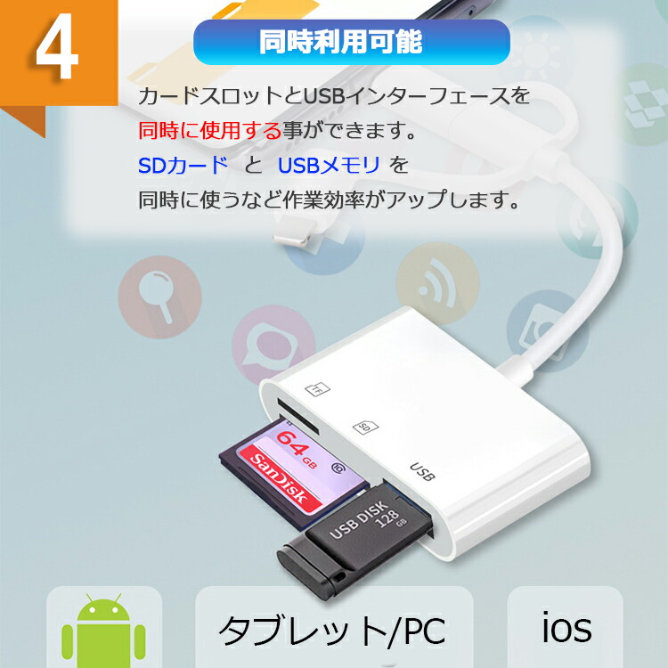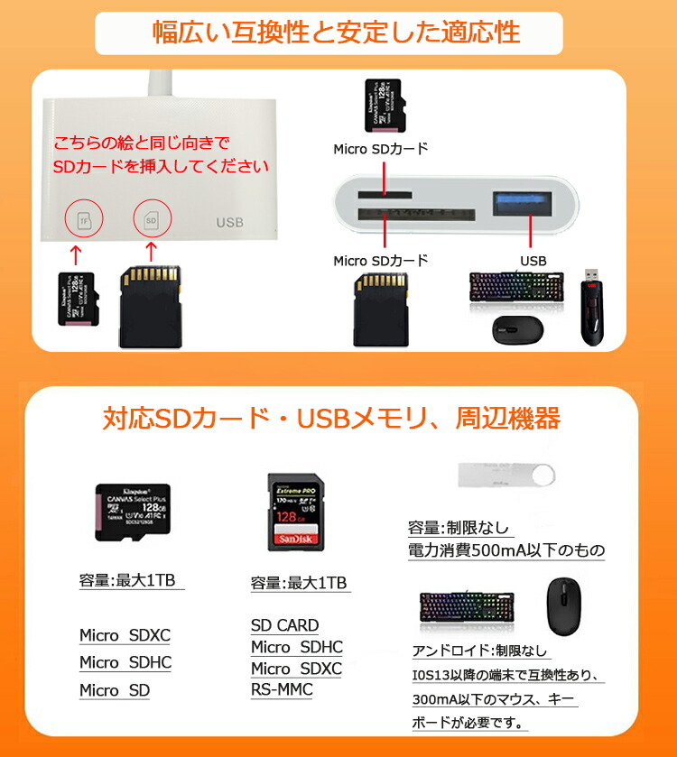 スマホ SDカードリーダー iPhone microSD マイクロSD カードリーダー 携帯 スマホ 写真 カメラ iPhone USB USBメモリ 32GB 64GB 128GB 256GB 512GB 1TB メモリー スティック アルバム 保存 ファイル データ 移行 移動 転送 高速 整理 バックアップ コピー ストレージ デバイス フォーマット 対応容量 大容量 最大容量 Android アンドロイド USB-C タイプC Type-C ハブ 一眼レフ マルチカードリーダー SDカードカメラリーダー 外付け メモリーカード lightning ライトニング Apple アップル マックブック MacBook air pro アイフォン アイパッド iPad iOS 15.3.1 ワイファイ 不要 ワイヤレス 書き込み 書き込み禁止 ロック 録音 音声 撮影 録画 動画 読み込み 2枚 3枚 高速 速さ 高性能 耐久性 最新 使い方 抜き差し 口コミ 信頼性 ランキング 性能 便利 プレゼント ギフト おすすめ ケーブル sim フリー ケース カバー Surface サーフェス ノートパソコン win10 カーナビ ドラレコ ブルーレイレコーダー テレビ プリンター フォトブック キッズカメラ TF変換アダプタ OTG機能 SD/TF/USB3.0カードと互換性 相互転送 同時充電 iPad Pro mini Air iPhone15 Pro Max iPhone14 Plus iPhone13 iPhone12 mini iPhone11 iPhone SE 写真/ビデオ高速転送 設定不要