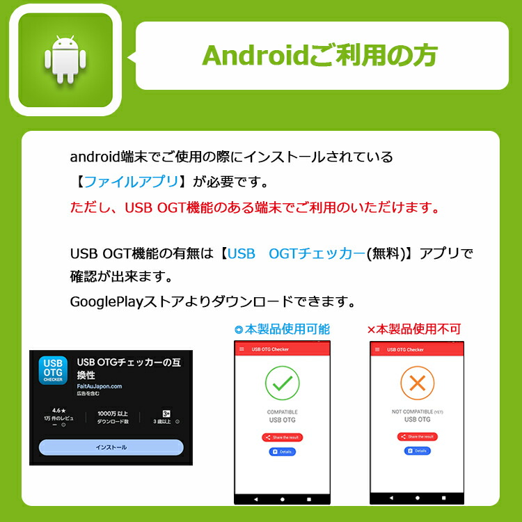 iOS13以上のすべてのiOSデバイス、OTG機能対応のAndroidスマートフォン/タブレット、およびUSBポートを備えたその他のデバイスをサポートしている。最大1TBのSDカード、最大500mAのUSBデバイスに対応。※キーボード、マウス、USBメモリ、プリンターなどのUSBデバイスに対応可能。