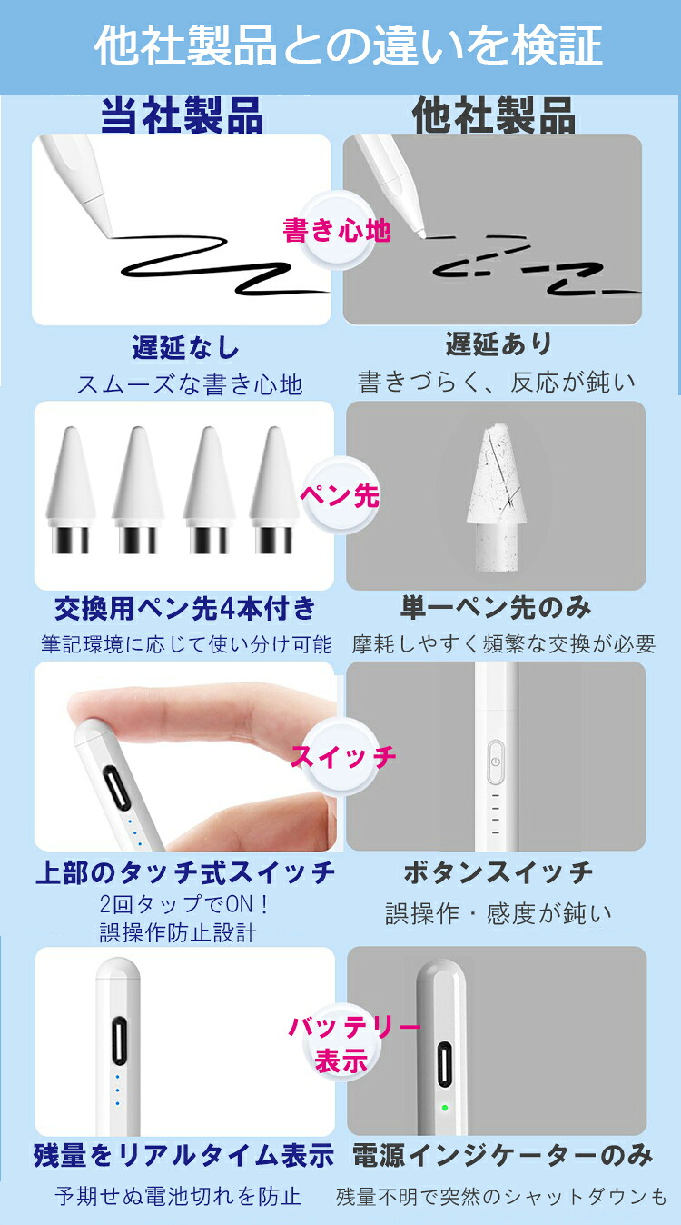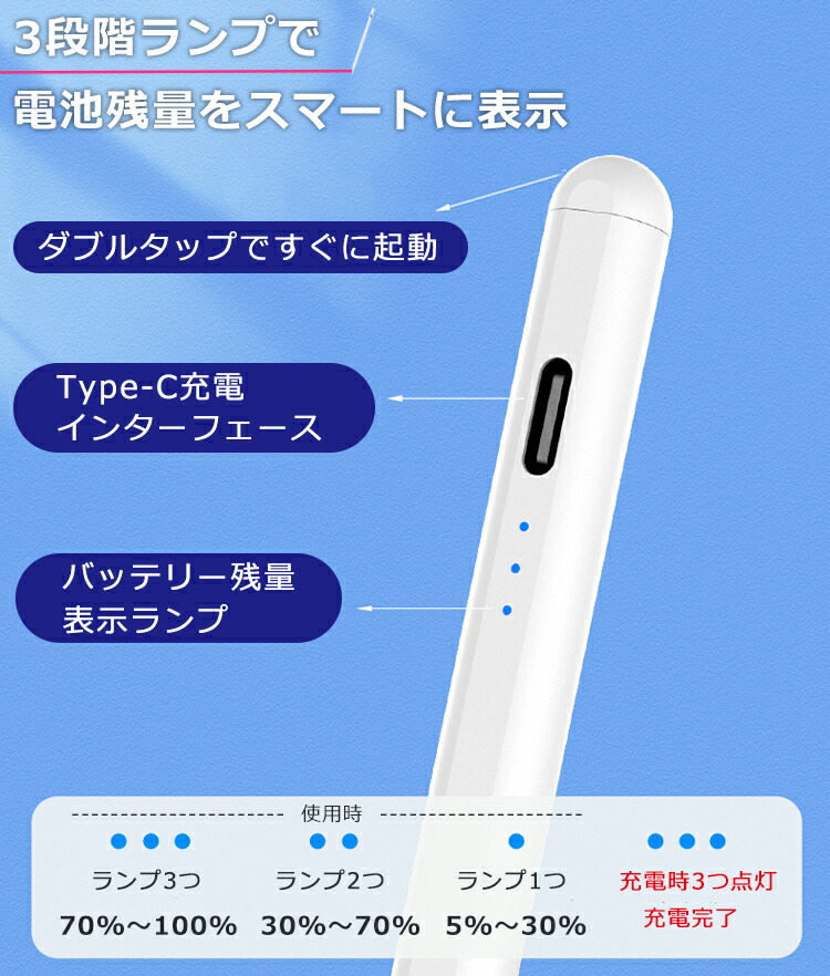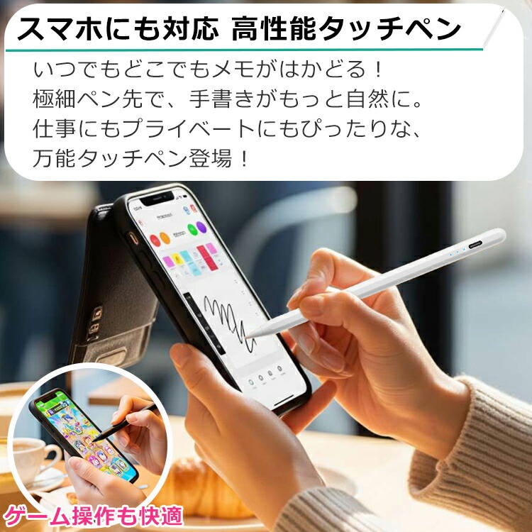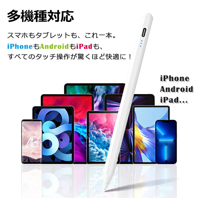 超高感度 タッチペン タブレット スマホ タッチペンiPad ペンシル スタイラスペン 極細 Type-C充電式 iPad A16 第11世代 1098 mini Air 11 13 インチ Pro
