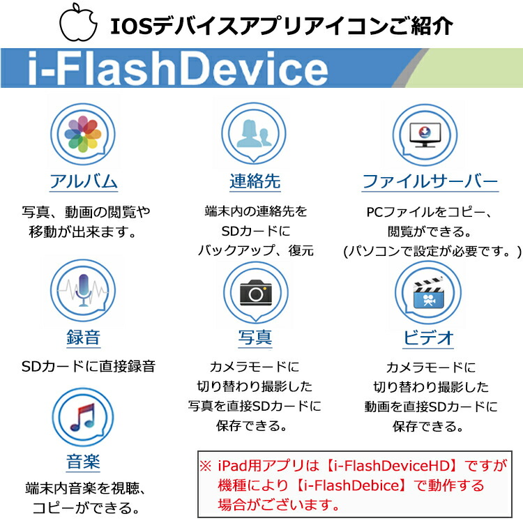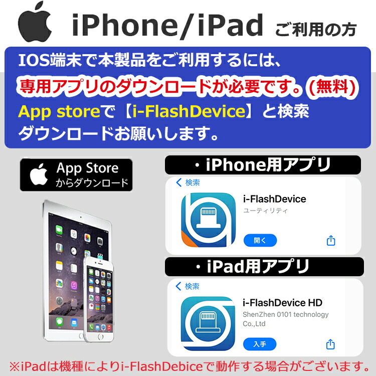 ※iPadは機種によりi-FlashDebiceで動作する場合がございます。