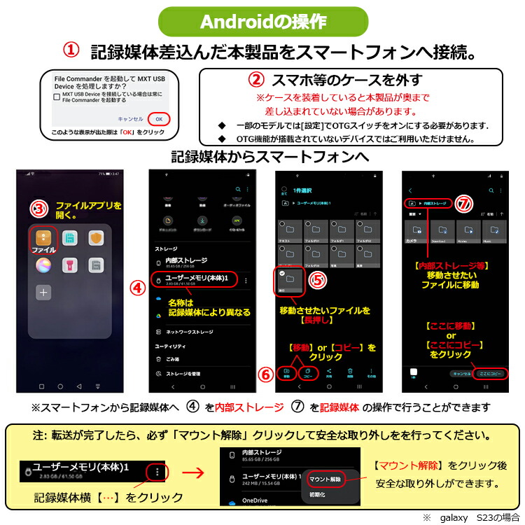データのコピーや移動が完全に終了した事をご確認の上 操作方法黄色い枠内の 【安全な取り外し】をお願いします。