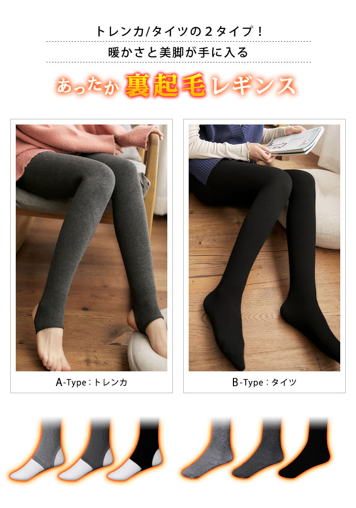 裏起毛 レギンス レディース 秋 冬 インナー 下着 ナイトウエア 続々入荷中 Aタイプ Bタイプ ライトグレー ダークグレー ブラック