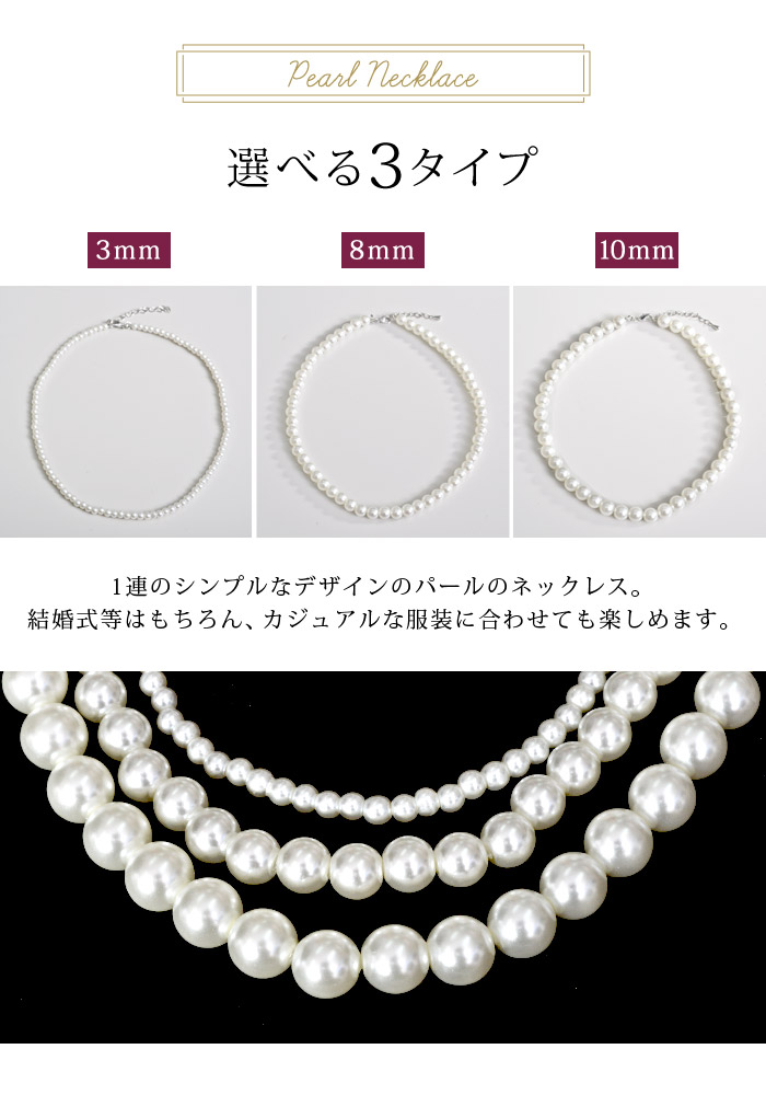 1連 パールネックレス 冠婚葬祭 パー レディースジュエリー アクセサリー ネックレス ペンダント 通販 3mmタイプ 8mmタイプ 10mmタイプ