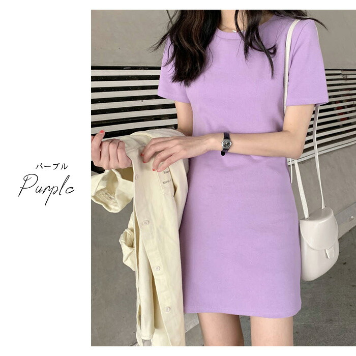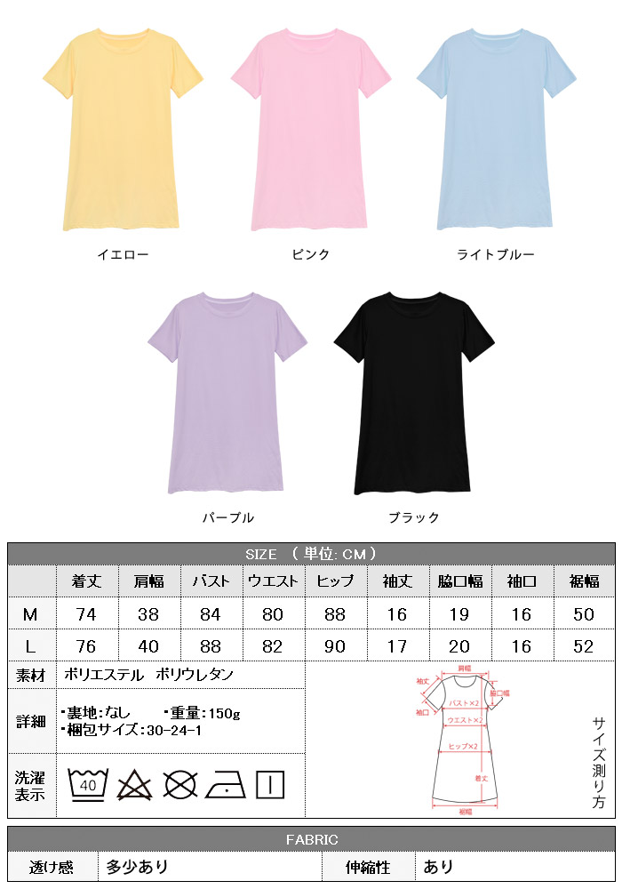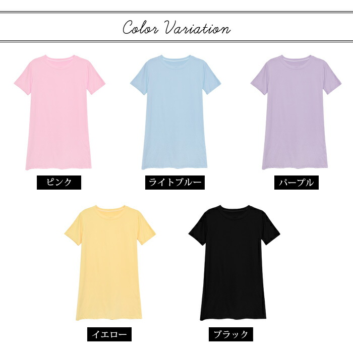 Tシャツ 半袖 ロング ワンピース レ レディースファッション 続々登場 イエロー ピンク ライトブルー パープル ブラック Mサイズ Lサイズ