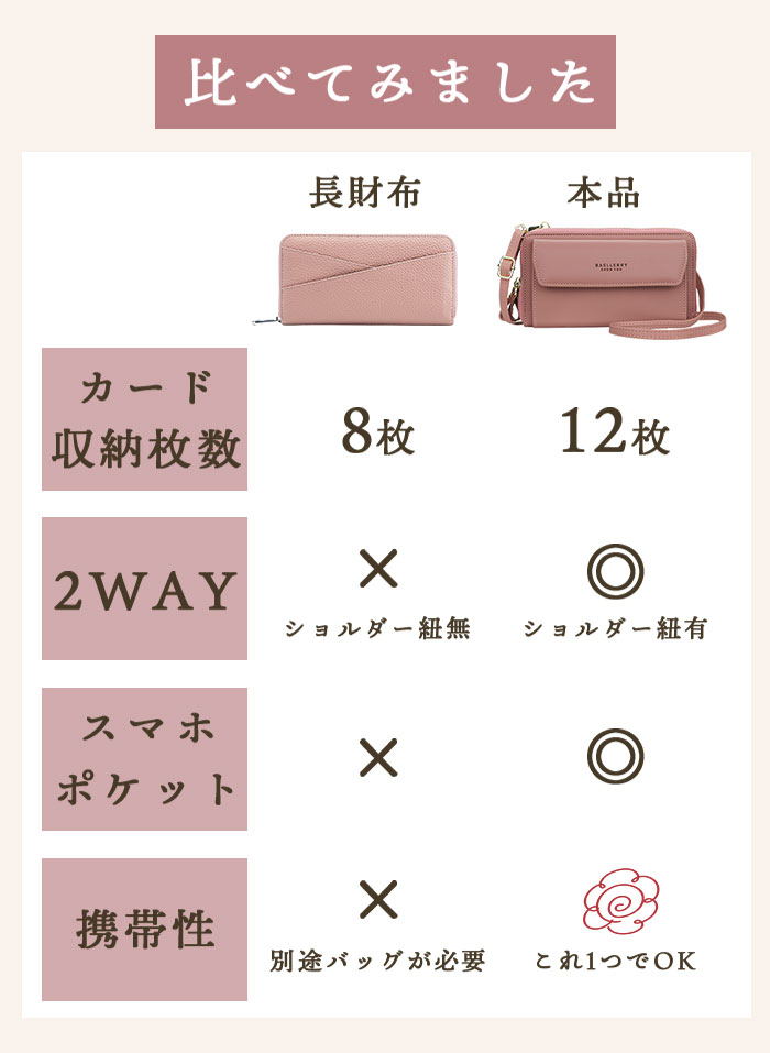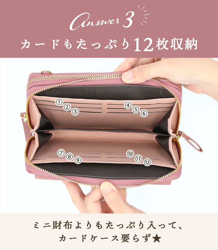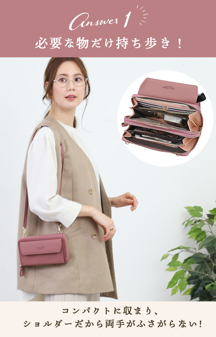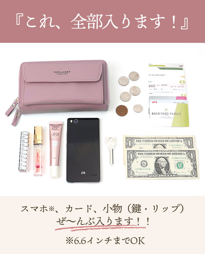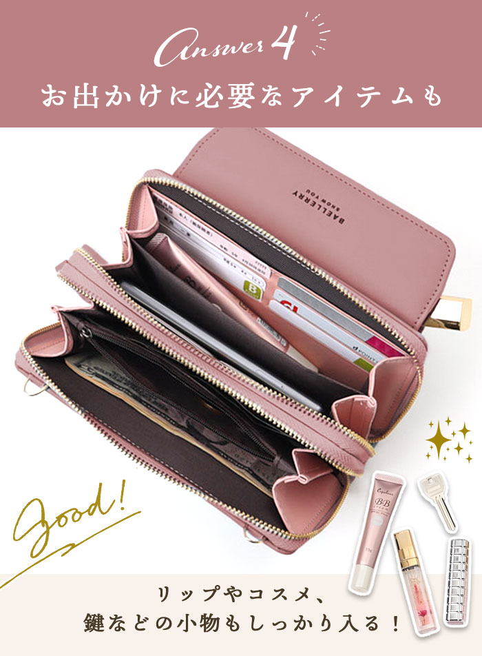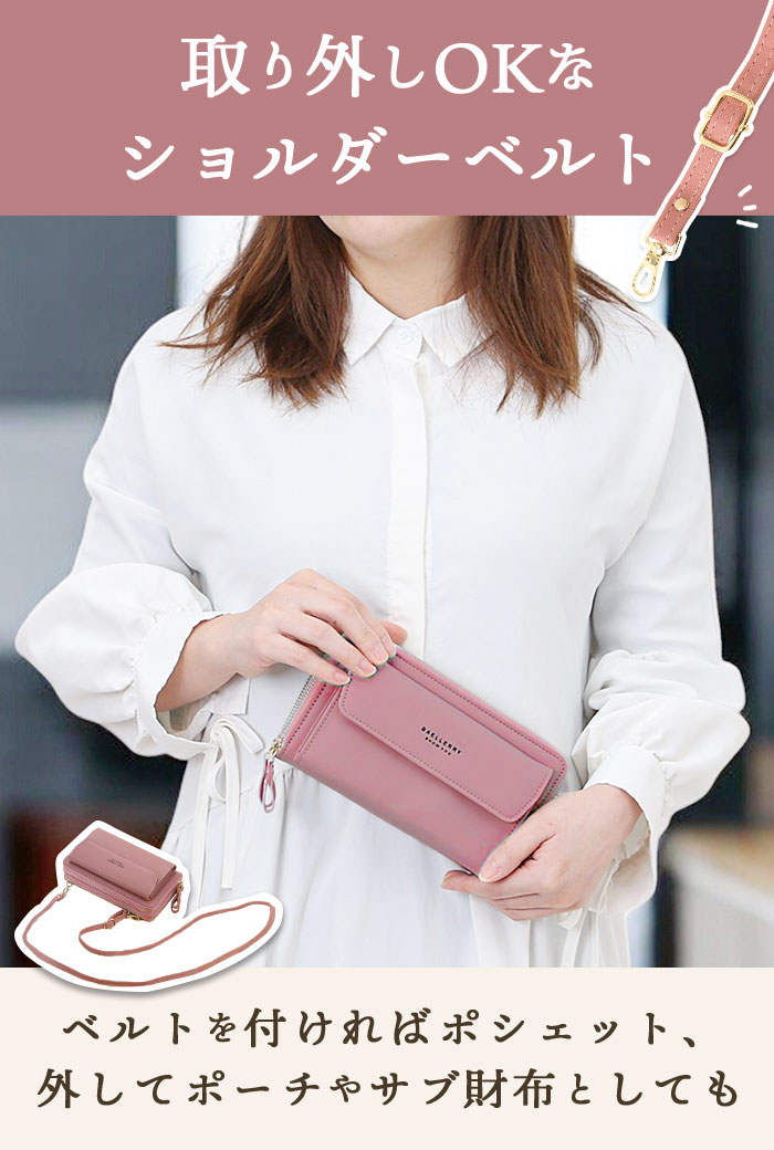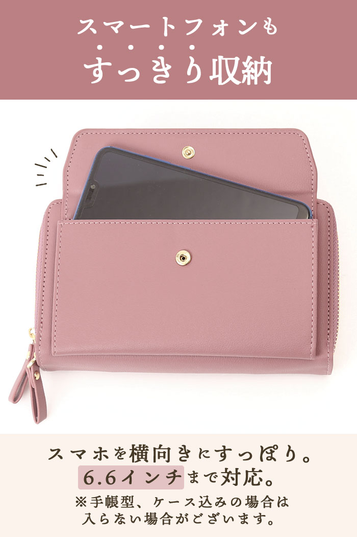 ・ちょっとしたおでかけやランチなど、少ない荷物でお出かけしたい時はこれ1つでOK♪スマホポーチと一体化したお財布ポシェットが新登場。