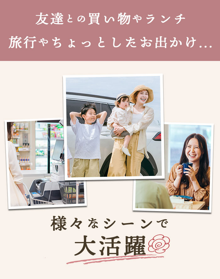 ・取り外しのできるショルダーベルトを使えば、ハンドポーチやショルダーバックとして、シーンに合わせて多彩なスタイリングが楽しめる!