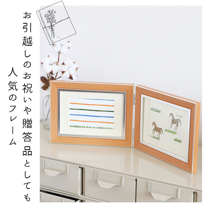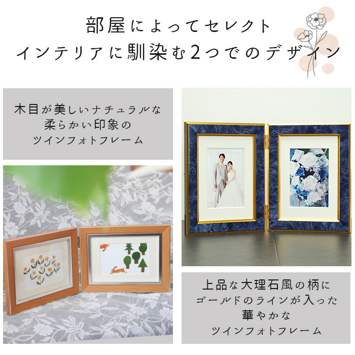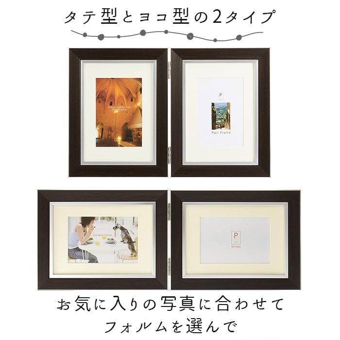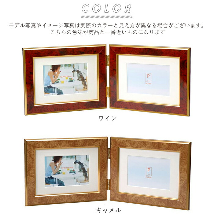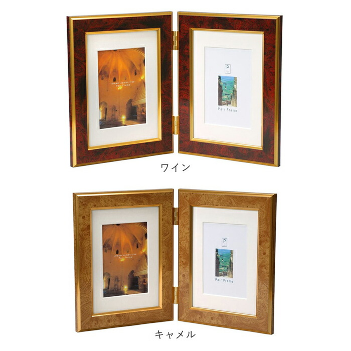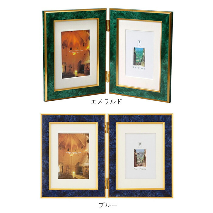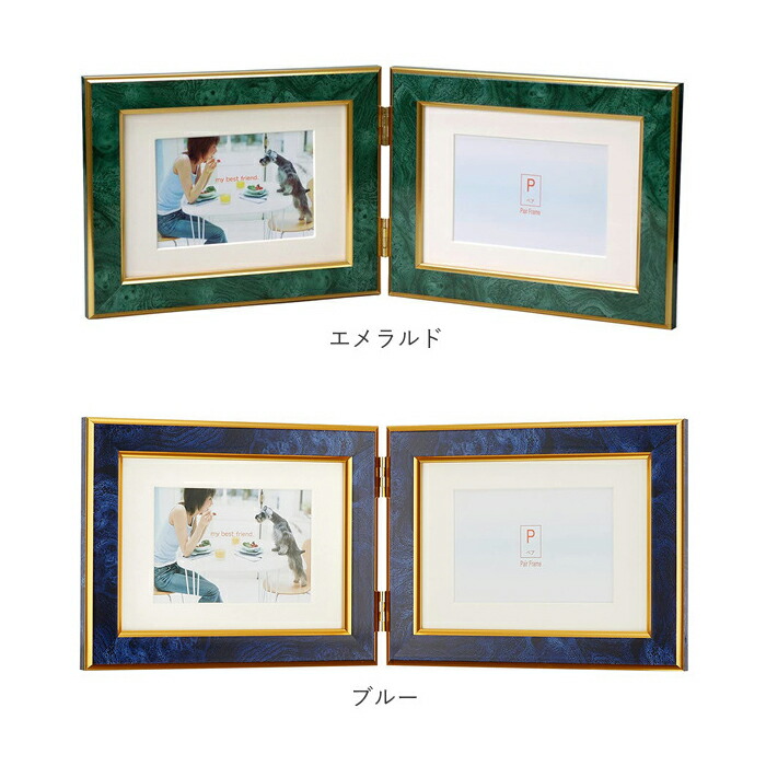 フォトフレーム おしゃれ 2面 通販 ワイン キャメル エメラルド ブルー ライトブラウン ダークブラウン