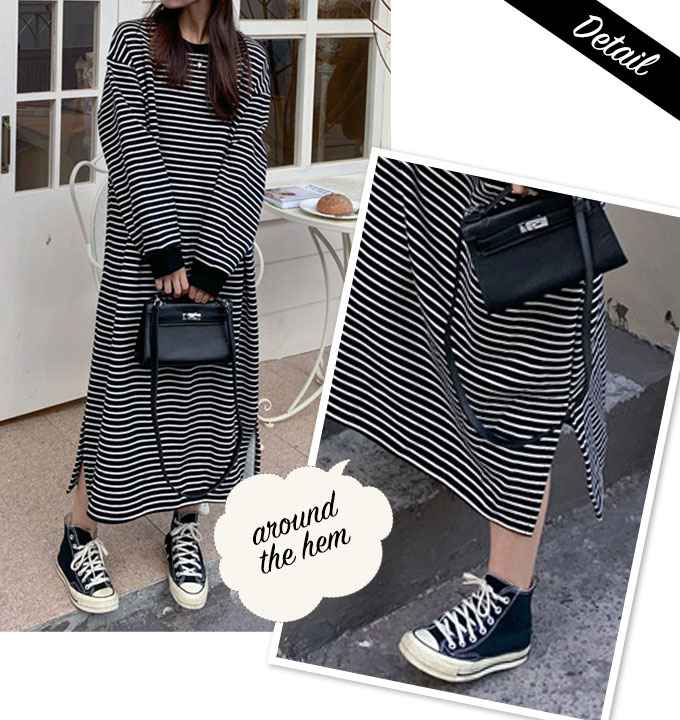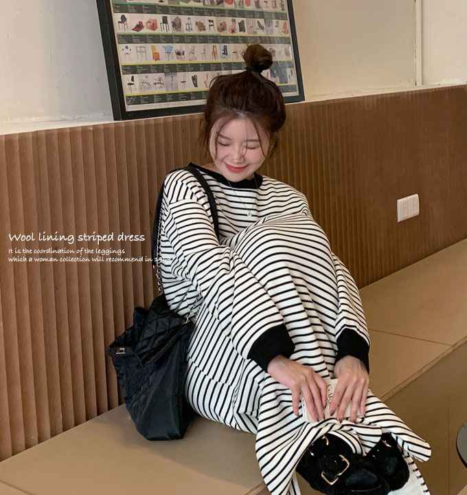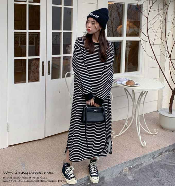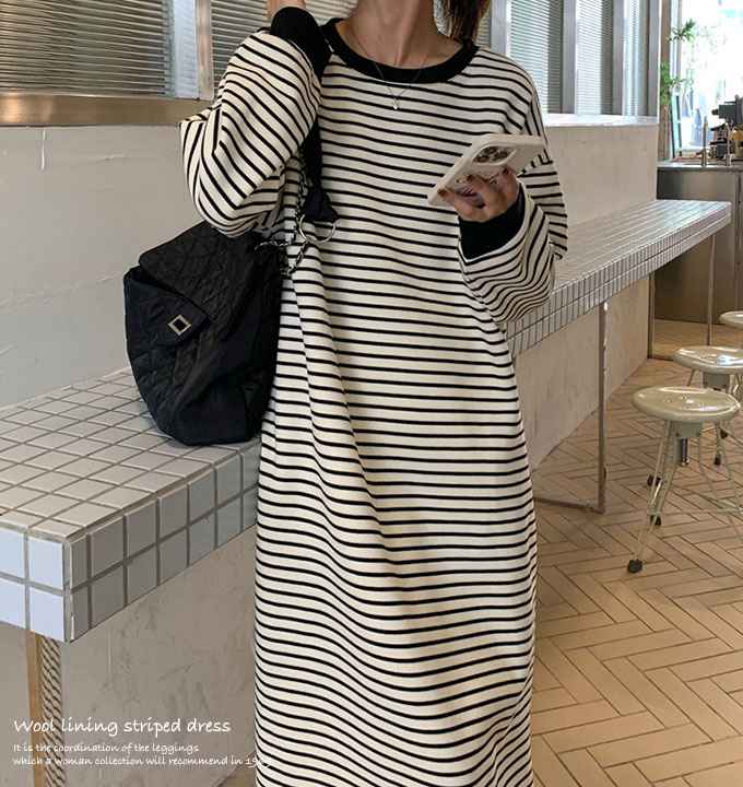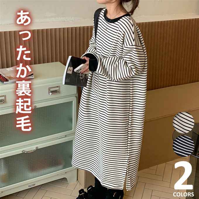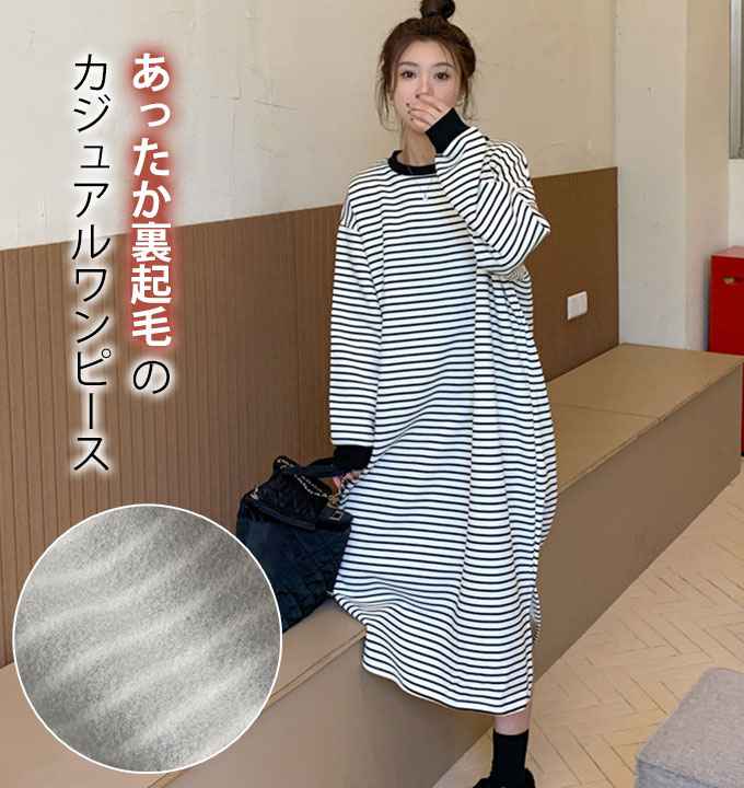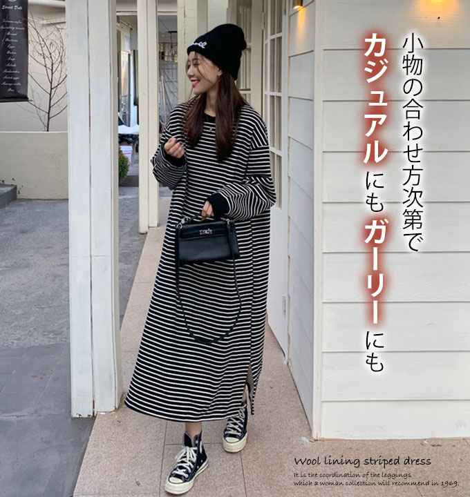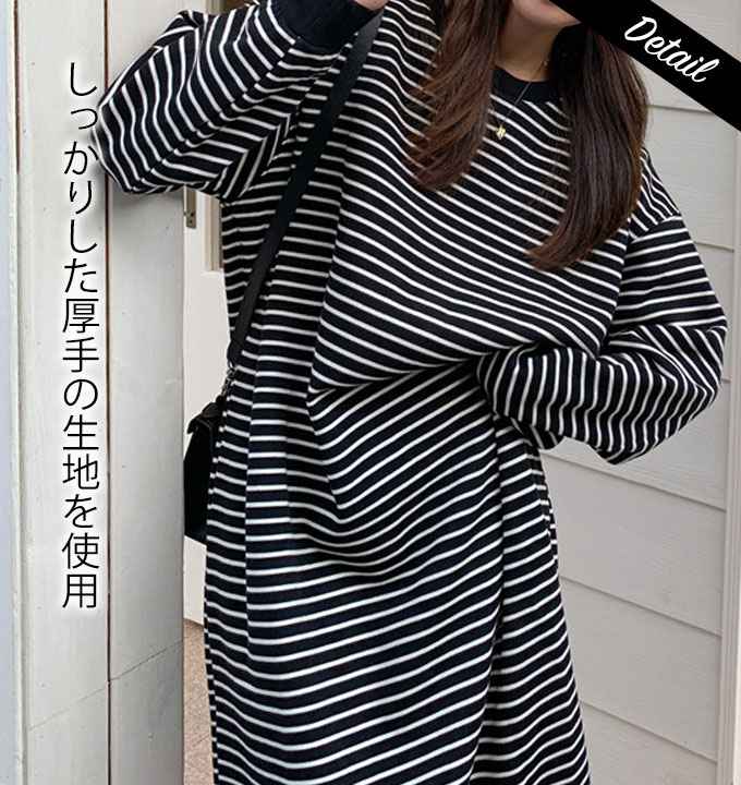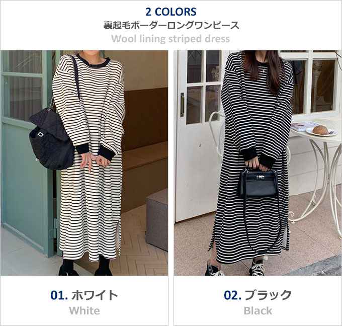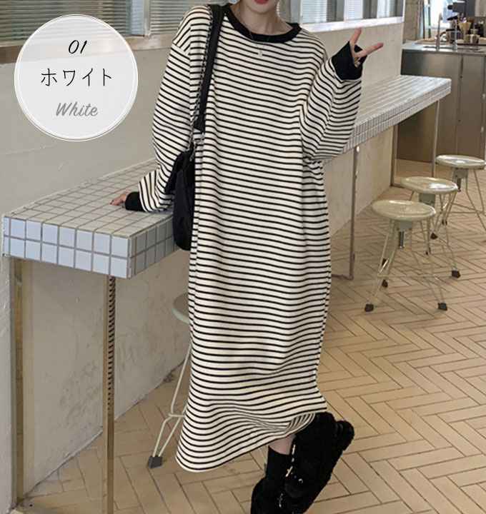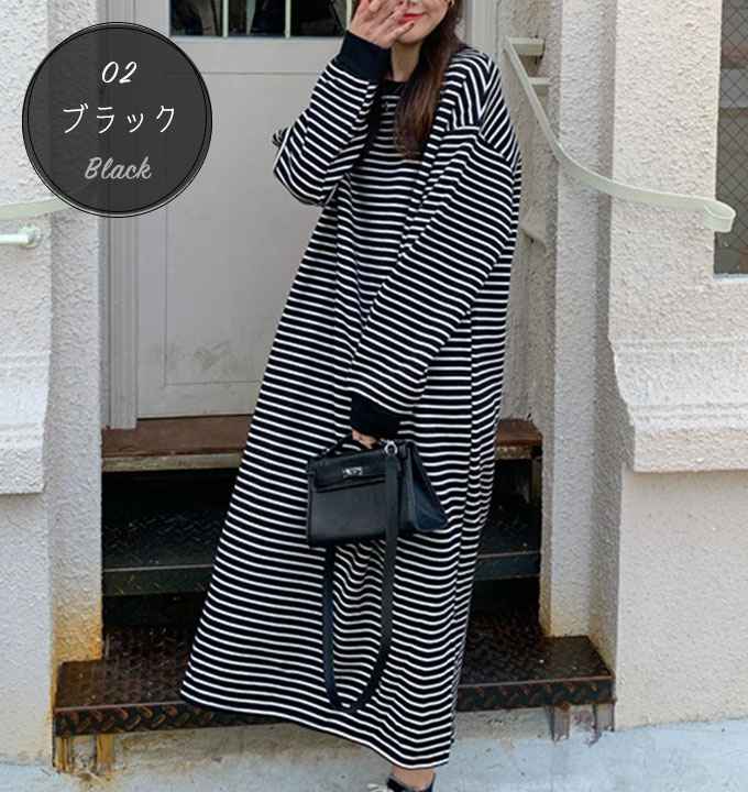 ワンピース ボーダー 長袖 ロング マ レディースファッション 超目玉商品 01.ホワイト 02.ブラック