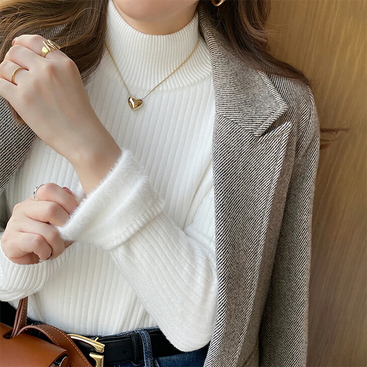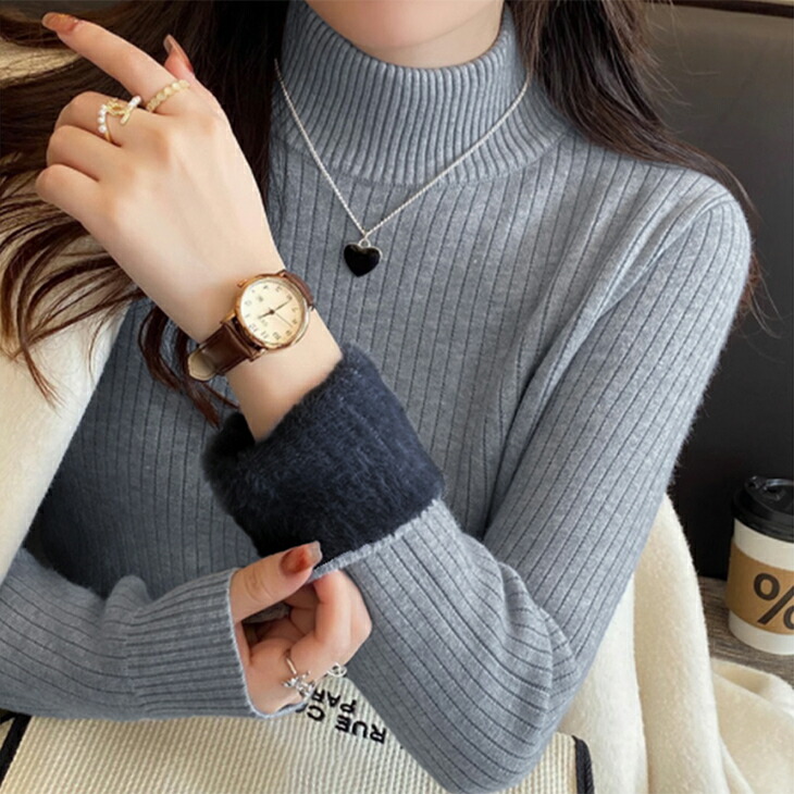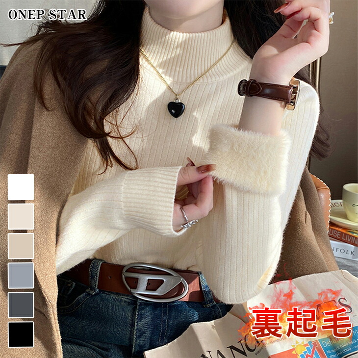裏起毛ハイネックリブニットトップス レ レディースファッション 早い者勝ち ベージュ ホワイト ダークグレー ブラック オートミール ライトグレー