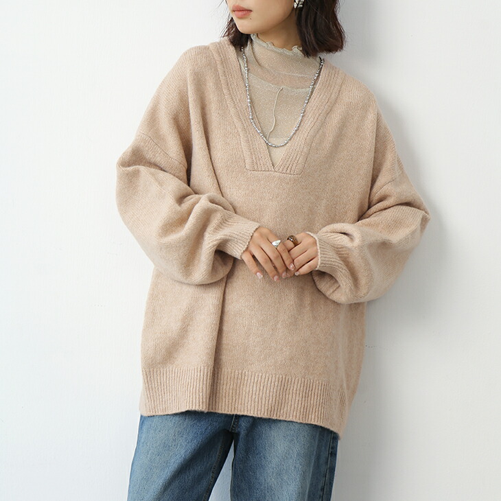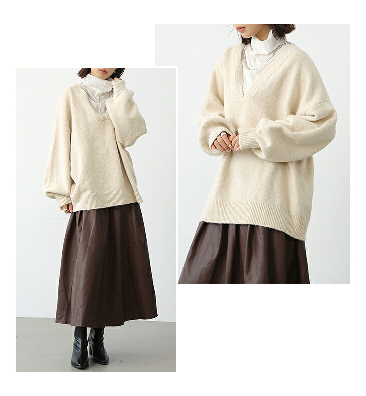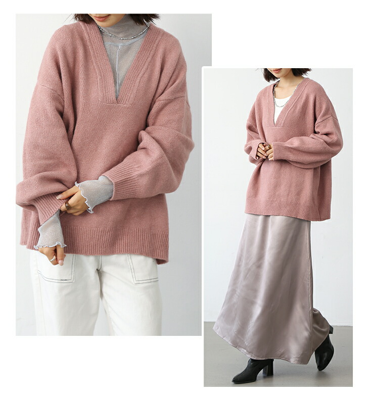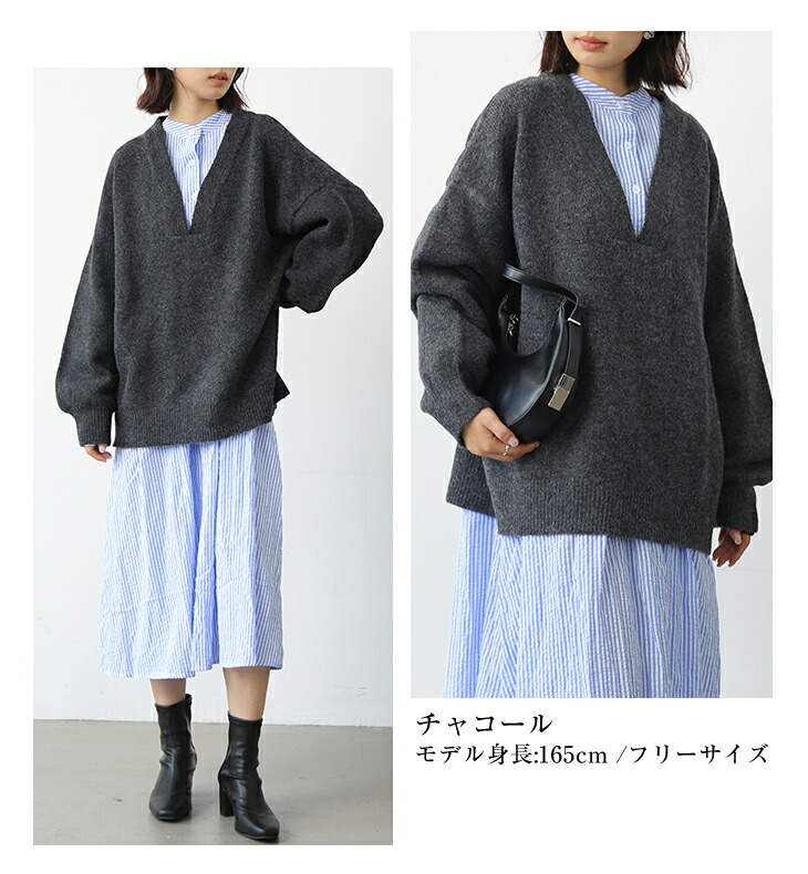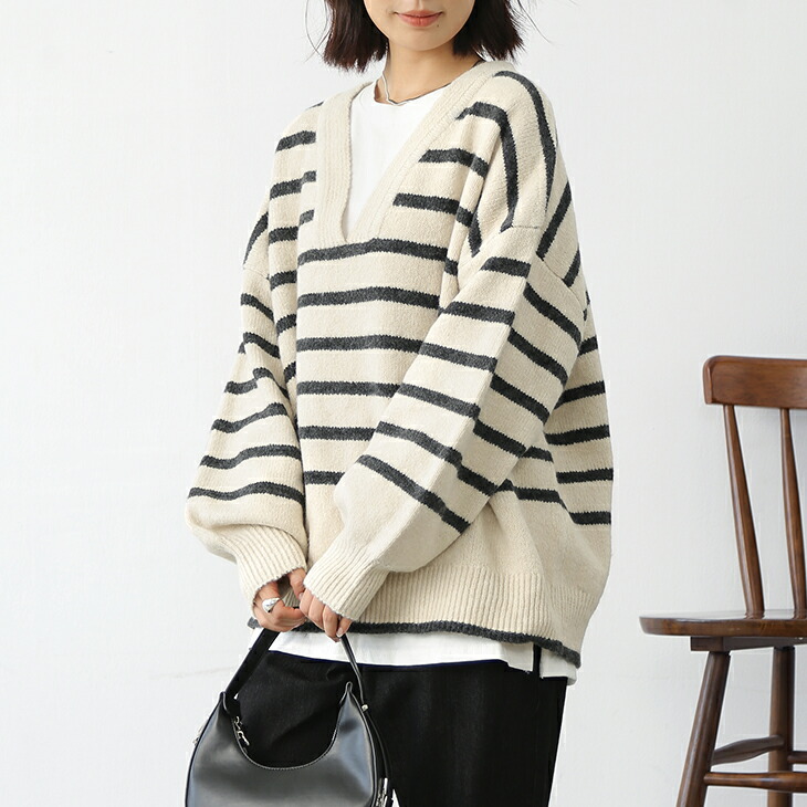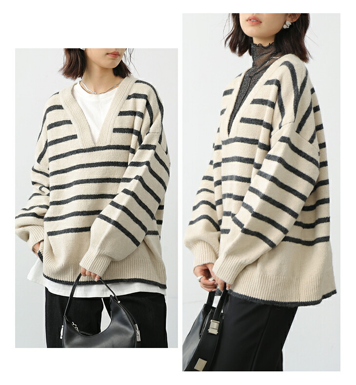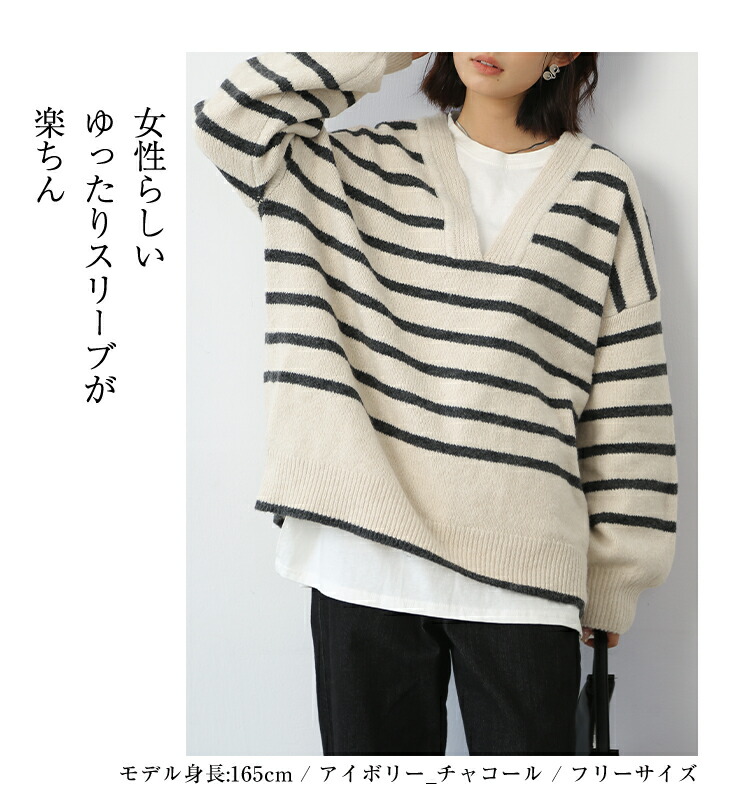 トップス セーター ロング ワイド 体 トップス ニット セーター セーター 早い者勝ち アイボリー ベージュ ピンク ネイビー チャコール グレージュ アイボリー_チャコール チャコール_アイボリー