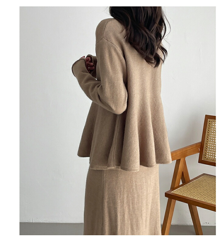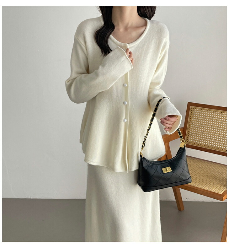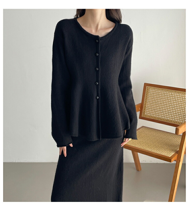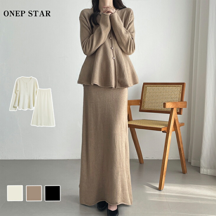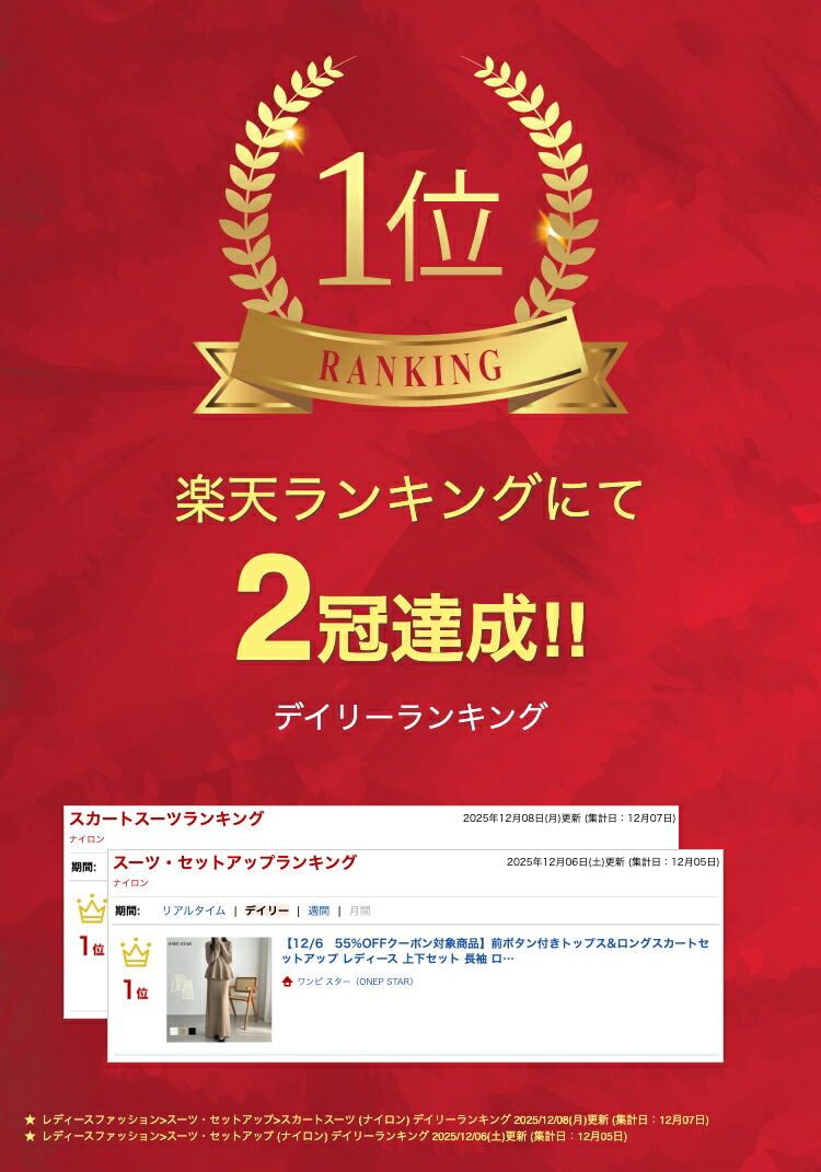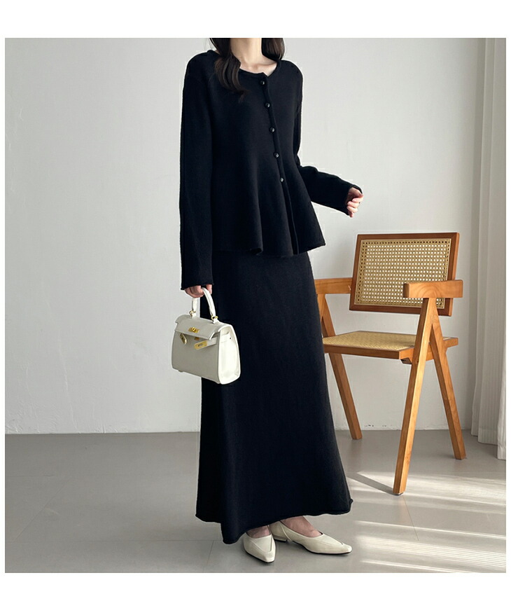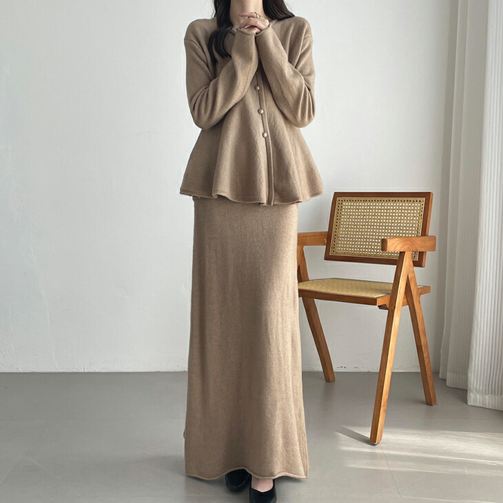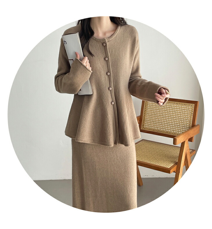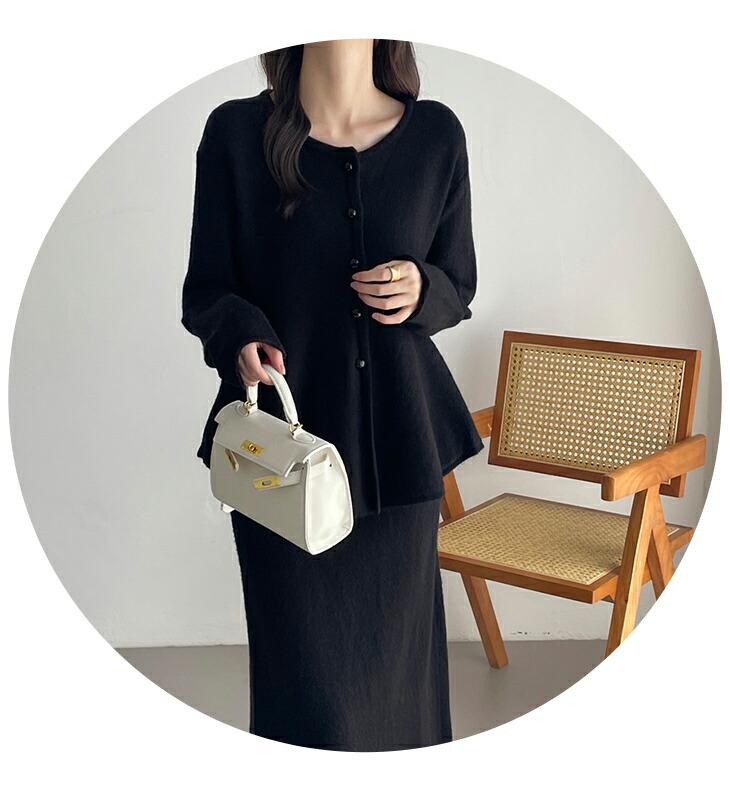 前ボタン付きトップス&ロングスカートセ レディースファッション 豊富な品揃え グレイッシュベージュ オフホワイト ブラック