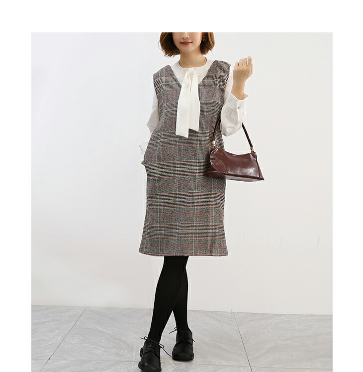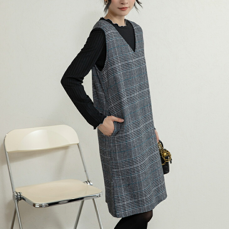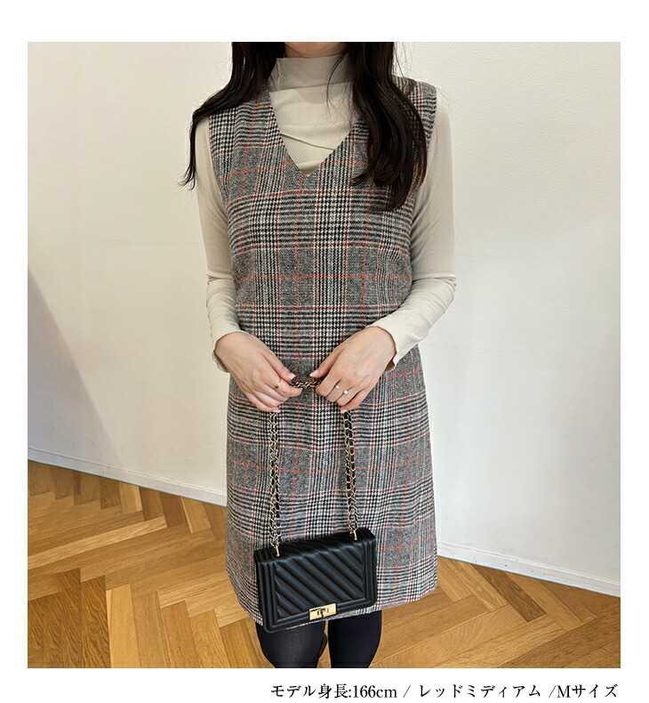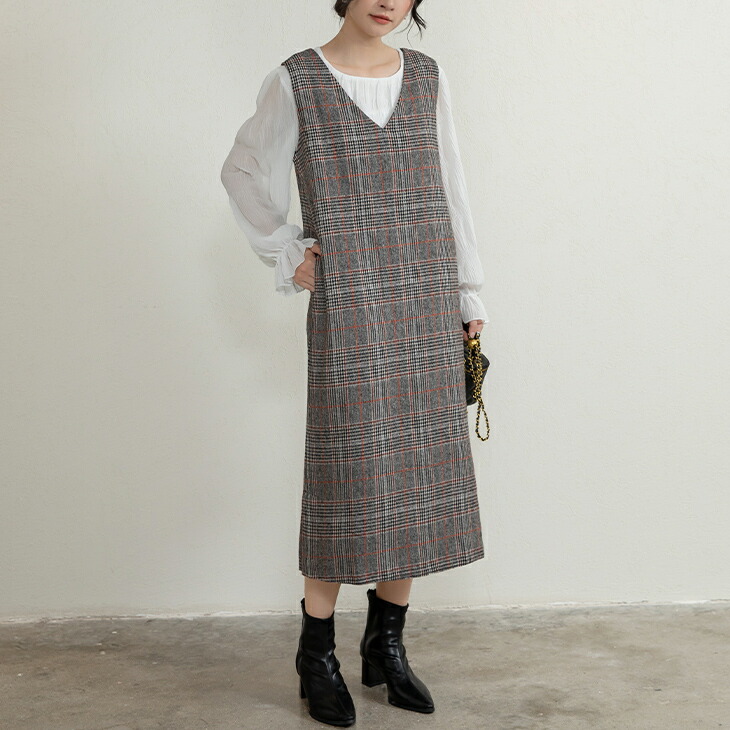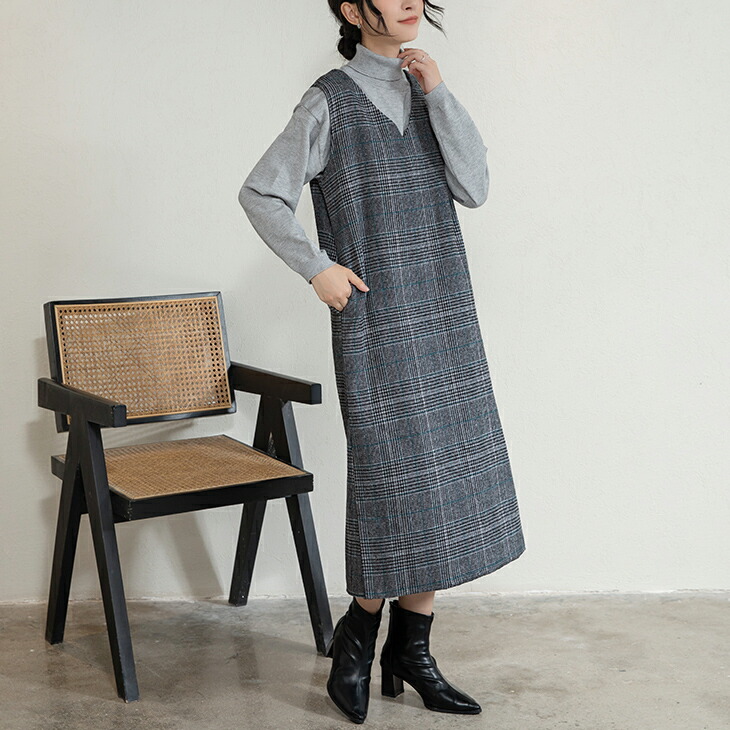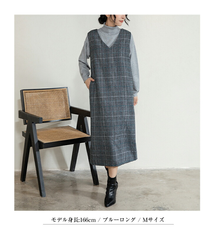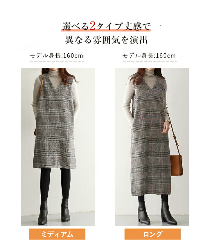 ジャンパースカート ジャンスカ グレン ブラウン ブルー レッド ロング ミディアム