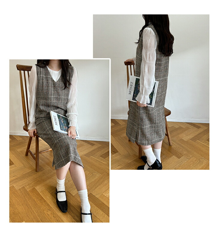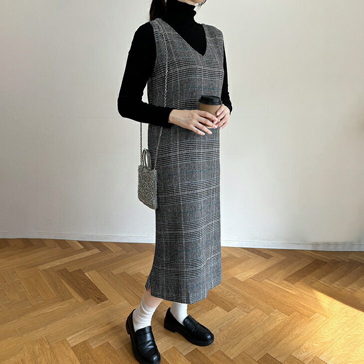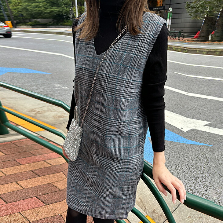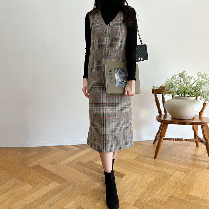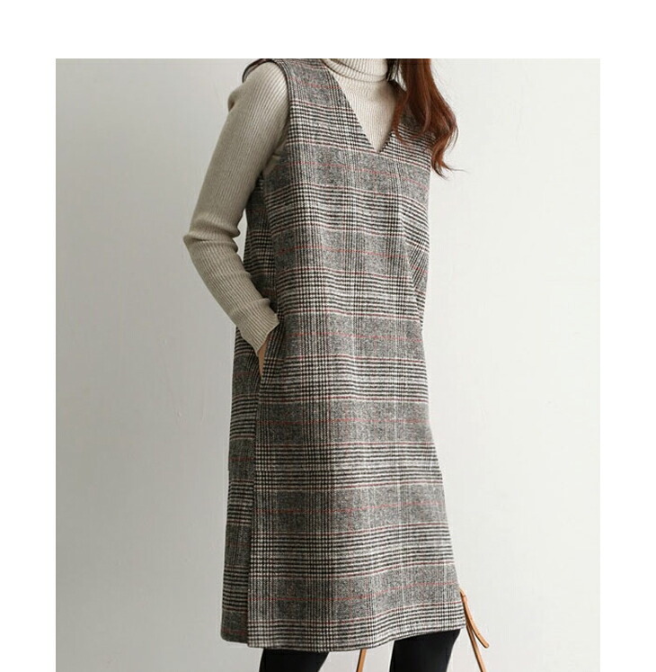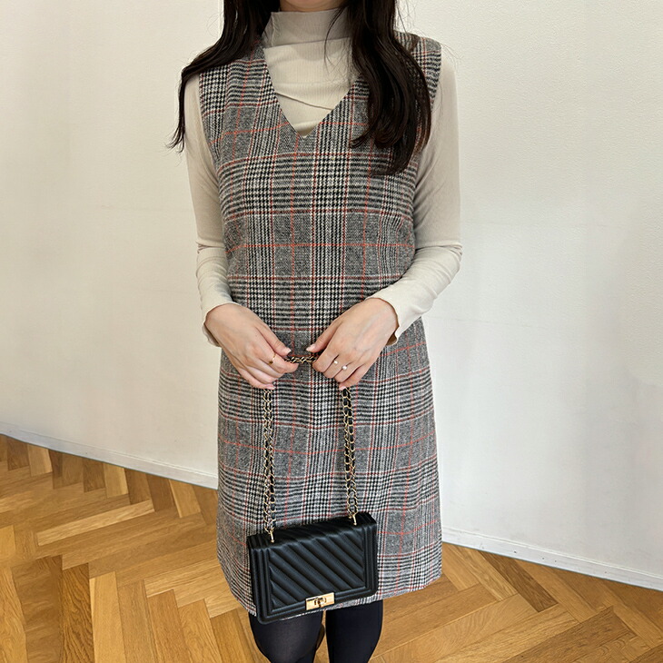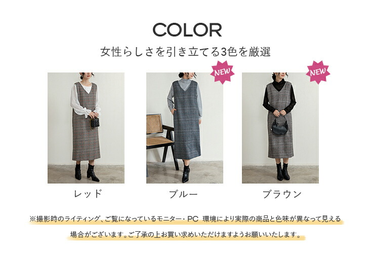 ジャンパースカート ジャンスカ グレン ブラウン ブルー レッド ロング ミディアム