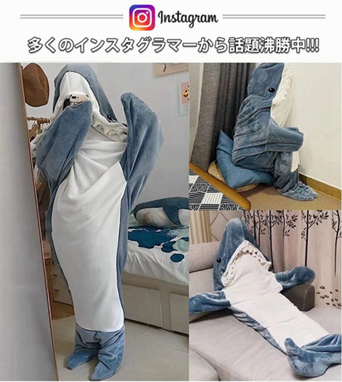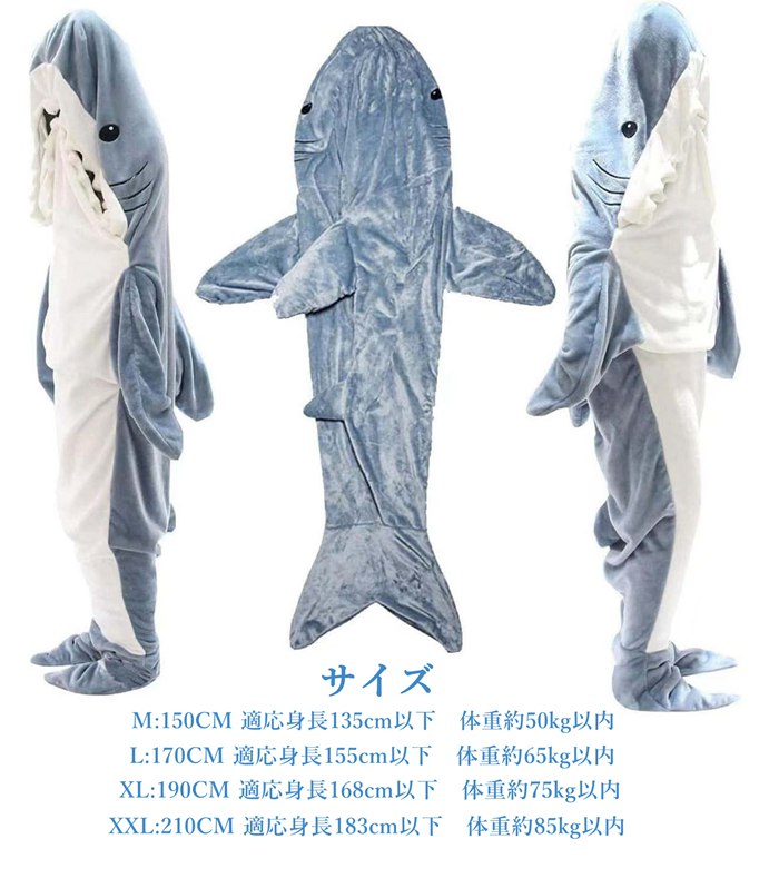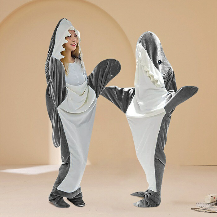 サメ寝袋 SNS話題で着る毛布 サメ着 コスプレ 変装 仮装 着ぐるみ 早い者勝ち ブルーグレー グレー ピンク ロイヤルブルー M L XL XXL