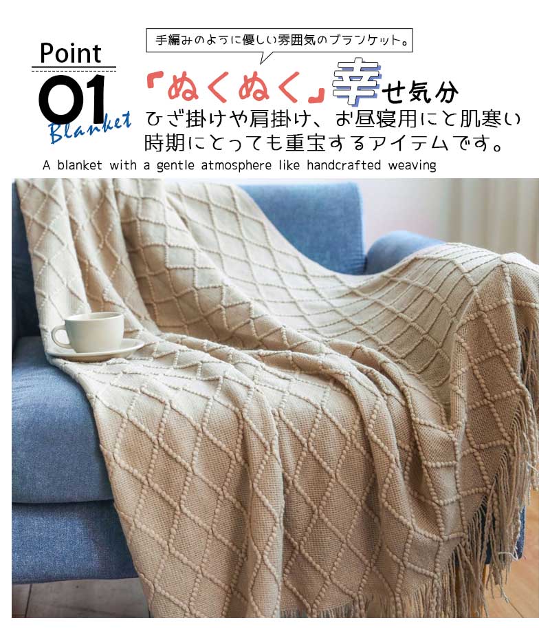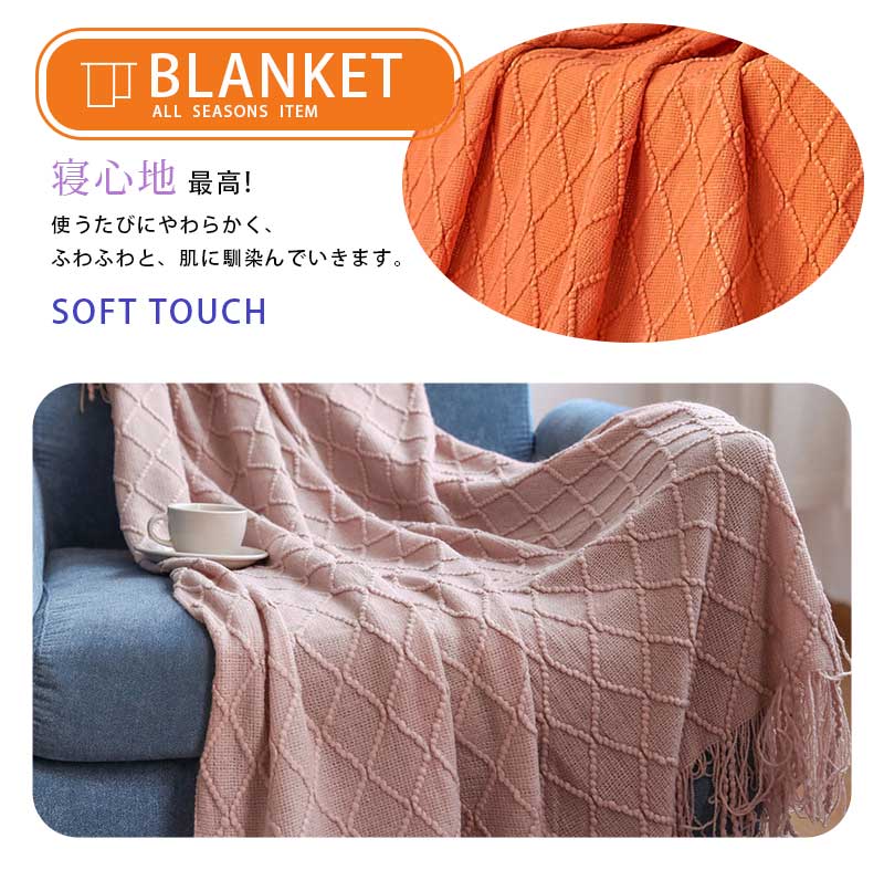 フリンジ付きブランケット 北欧 大判 おしゃれ ベッドスロー ニットブランケット 夏用 毛布 マルチクロス スローケット マルチカバー タオルケット ひざ掛け ふわふわ ベビー 膝掛け 掛け 柔らかい