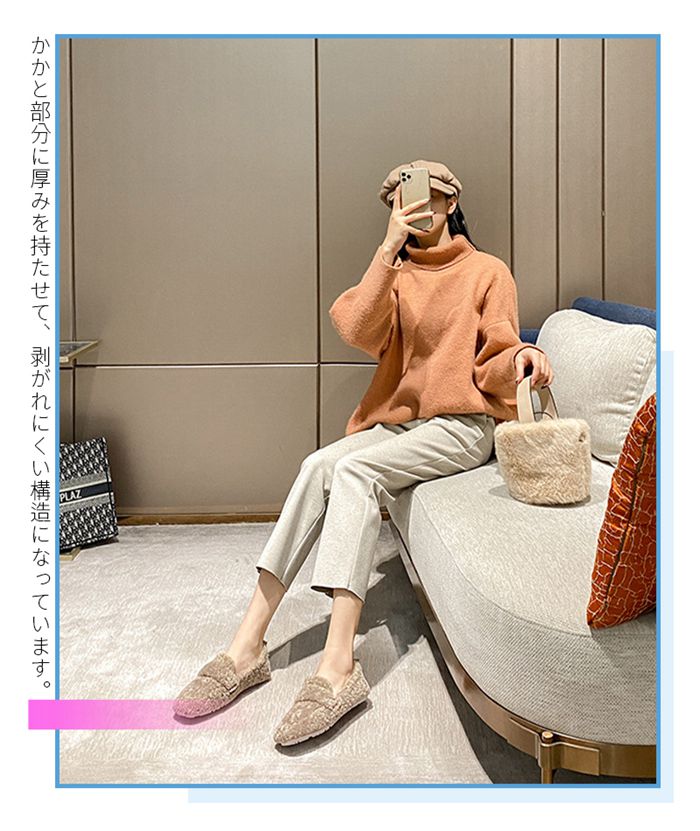 ぺたんこ ムートンモカシン 暖かい ロ 靴 新登場! ブラック マスタード ベージュ 22.5cm 23cm 23.5cm 24cm 24.5cm 25cm 25.5cm 26cm 26.5cm
