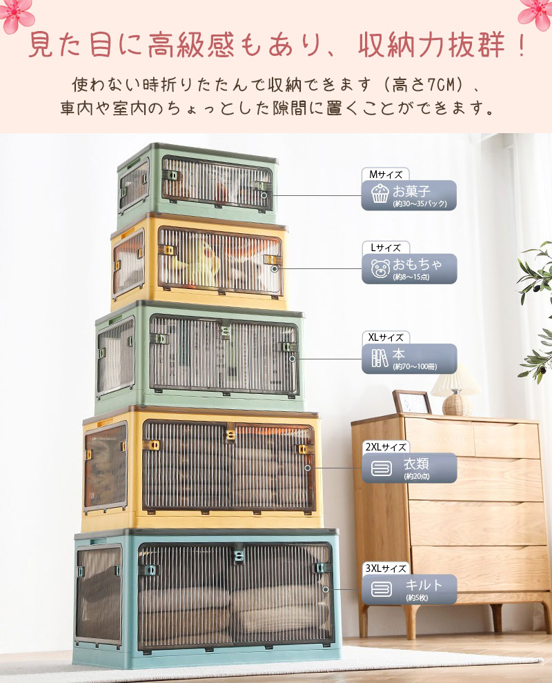 収納ボックス 折りたたみコンテナボック Type1 Type2 ホワイト グリーン イエロー ブルー クリームホワイト アイボリー