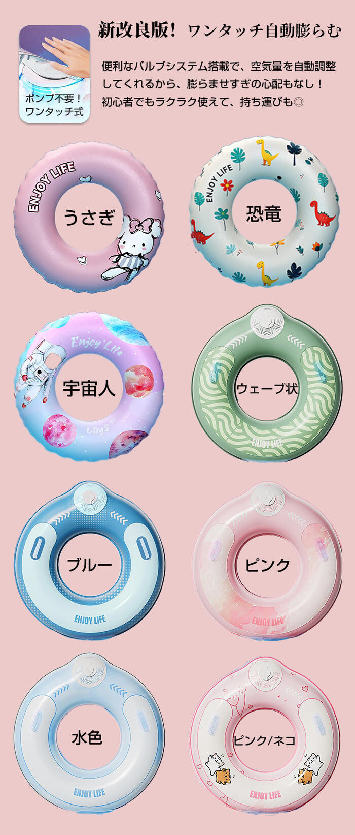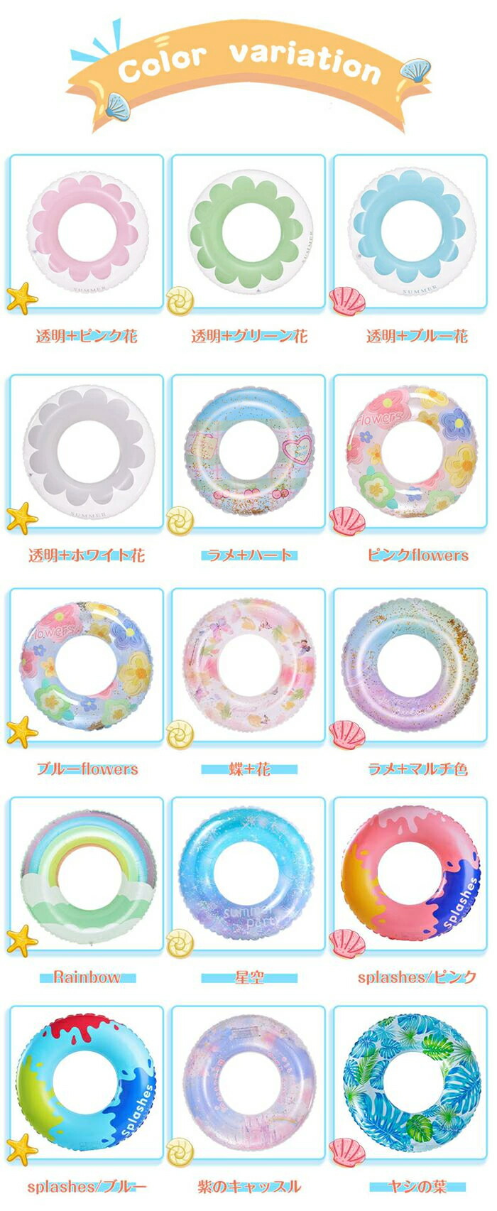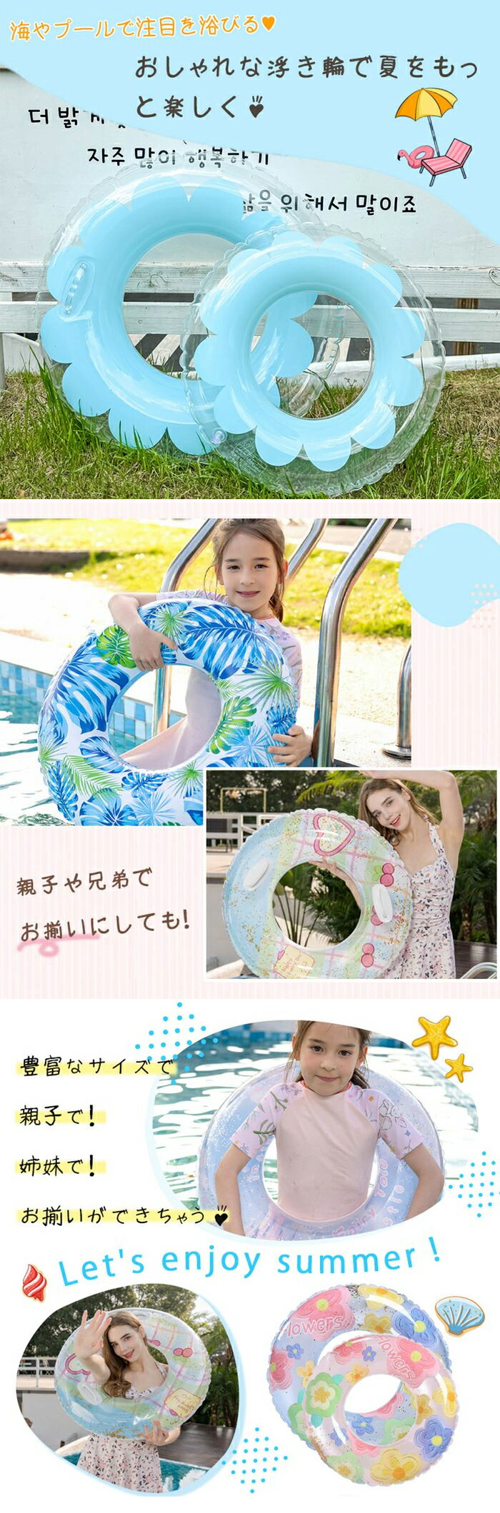 大人気 浮き輪 自動膨らむ仕様追加済 おもちゃ ゲーム 通販 透明+ピンク花 透明+グリーン花 透明+ブルー花 透明+ホワイト花 ラメ+ハート ピンクflowers ブルーflowers 蝶+花 ラメ+マルチ色 rainbow 星空 splashes/ピンク splashes/ブルー 紫のキャッスル ヤシの葉 自動膨らむ-うさぎ 自動膨らむ-恐竜 自動膨らむ-宇宙人 自動膨らむ-ウェーブ状 自動膨らむ-ブルー 自動膨らむ-ピンク 自動膨らむ-水色 自動膨らむ-ピンク/ネコ 60cm(145g) 70cm(165g) 80cm(220g) 90cm/取ってなし(285g) 90cm/取って付き(365g) 100cm/取っ手付き