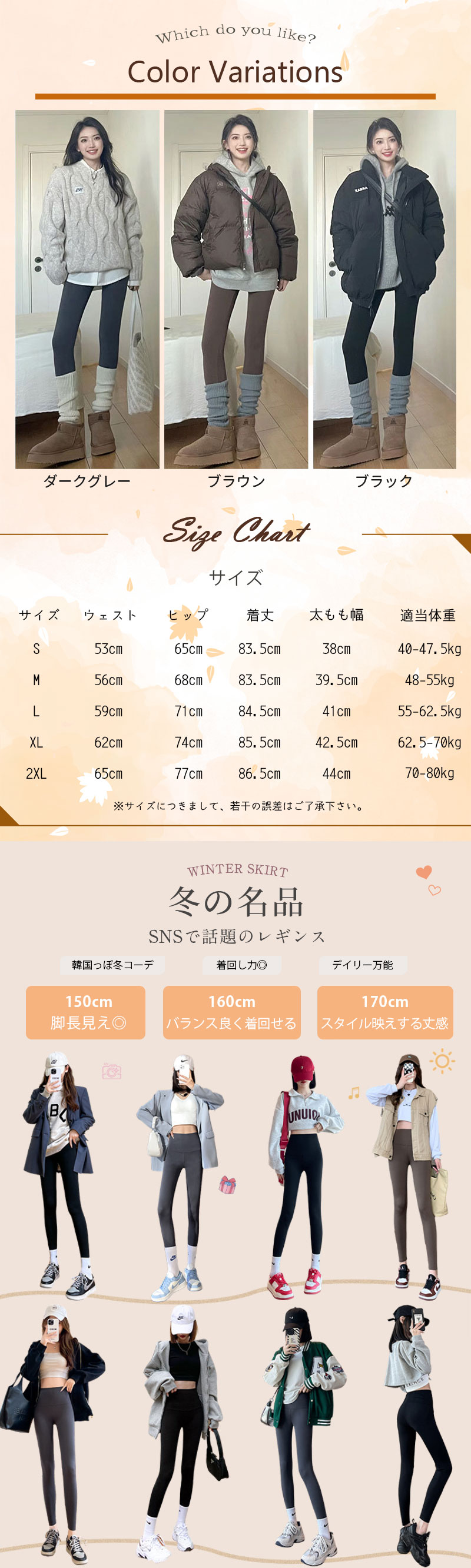 レギンス 裏起毛 トレンカ 美脚 厚手 インナー 下着 ナイトウエア 続々入荷中 ダークグレー ブラウン ブラック なし(春秋対応) 裏微起毛(0℃~15℃対応) 裏ボア(-10℃~5℃対応)