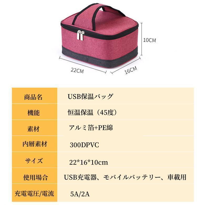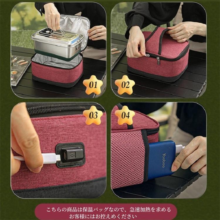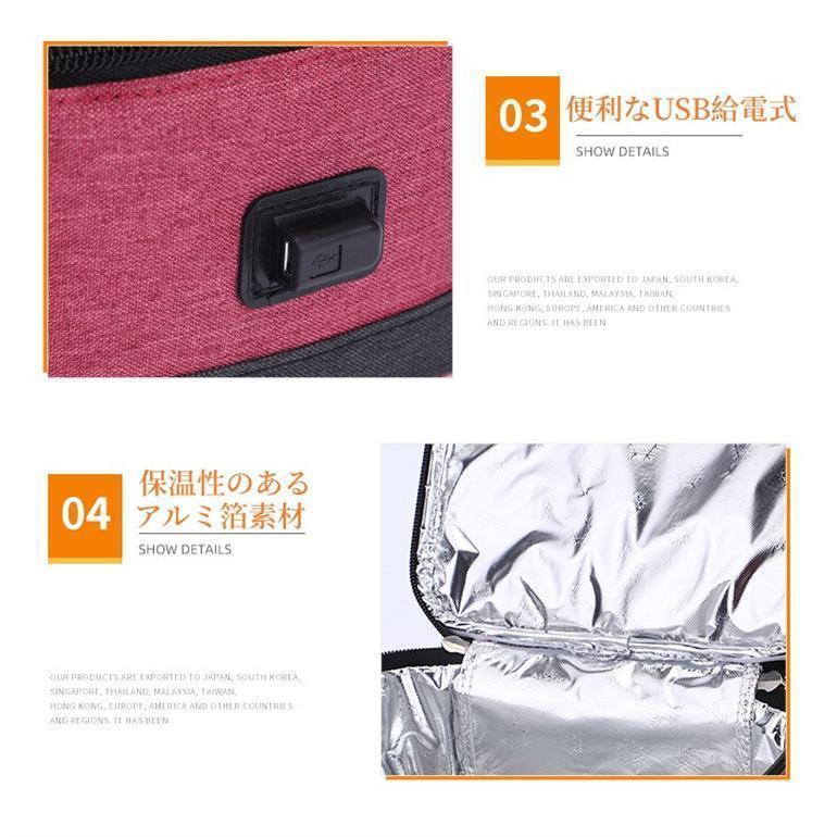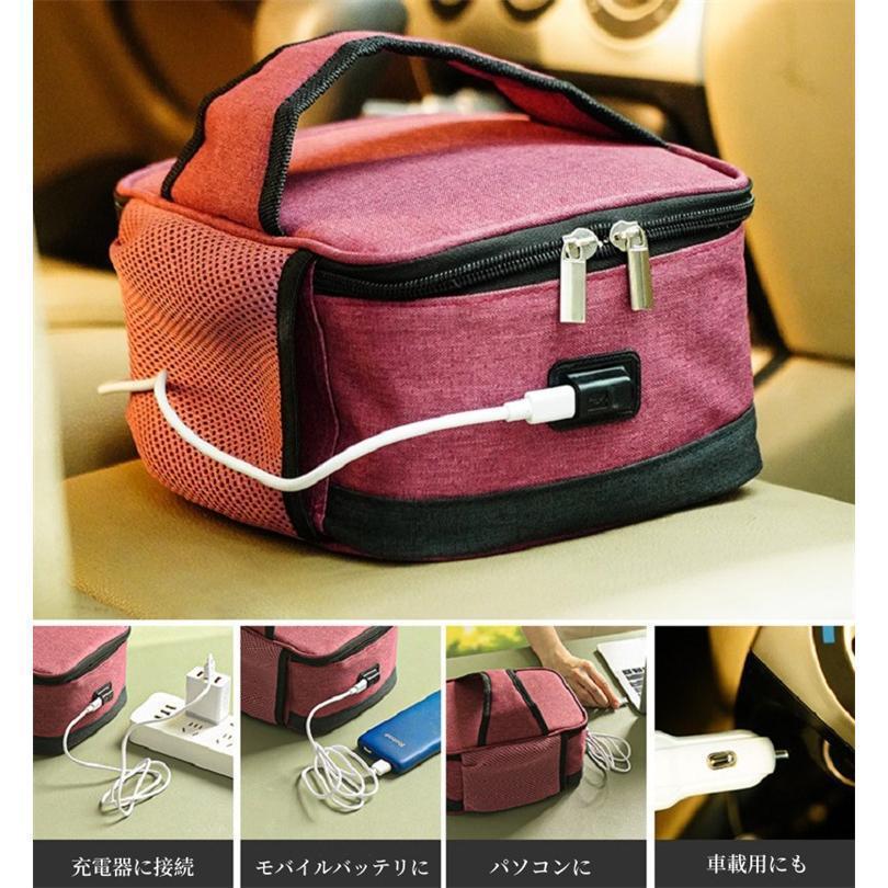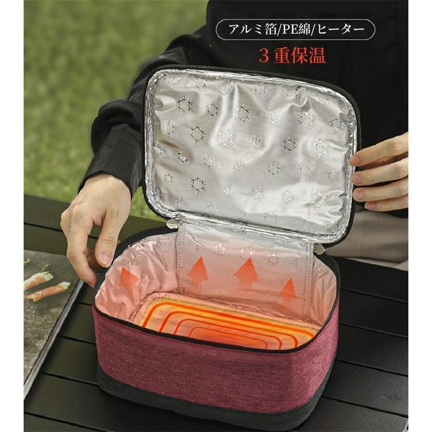 保温バッグ ヒーター内蔵 お弁当 電熱 キッチン用品 食器 調理器具 通販 グレー ピンク