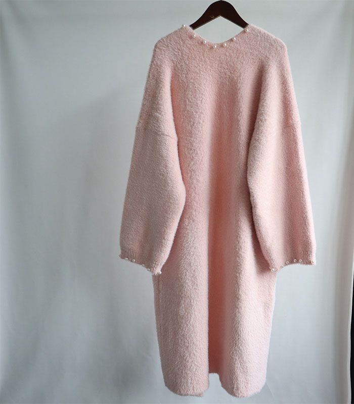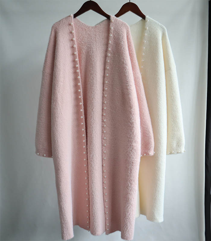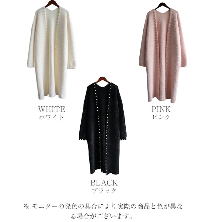 ロングカーディガン シャギー ニット トップス カーディガン ボレロ 新作 ホワイト ピンク ブラック