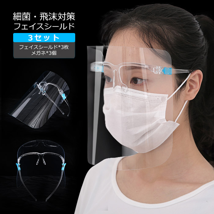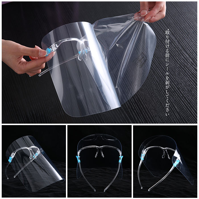 フェイスシールド フェイスガード 透明 メガネ3個+シールド3枚 シールド5枚(メガネなし)