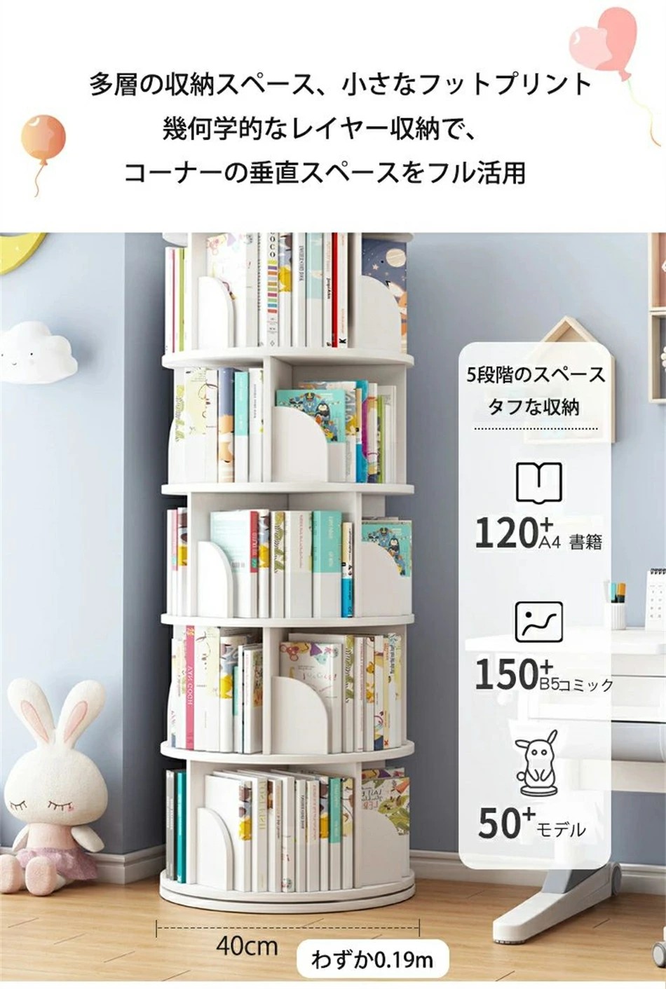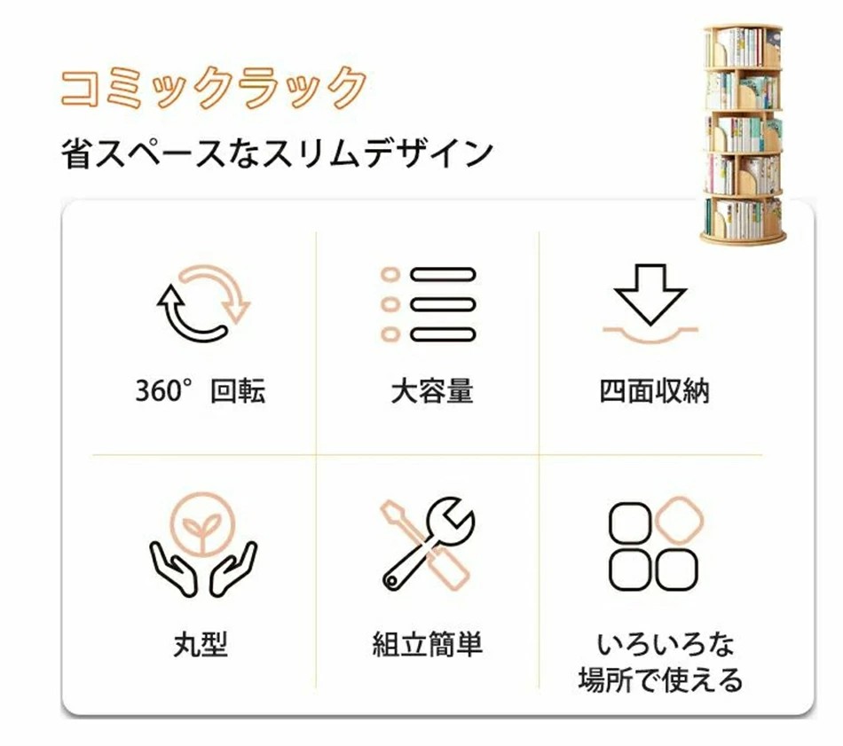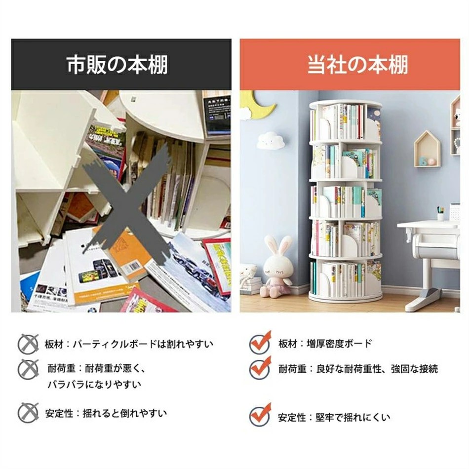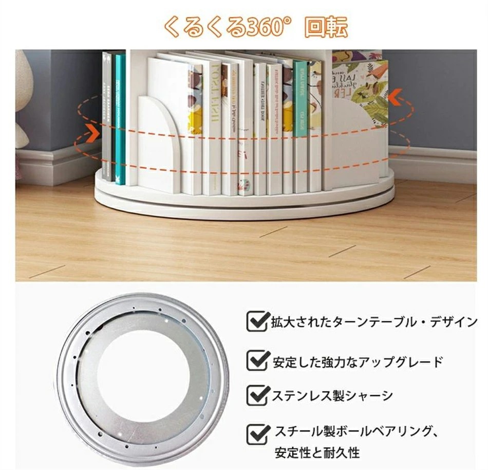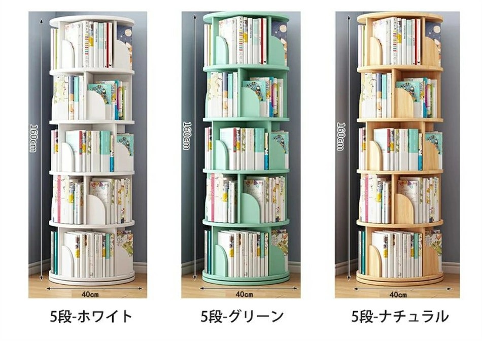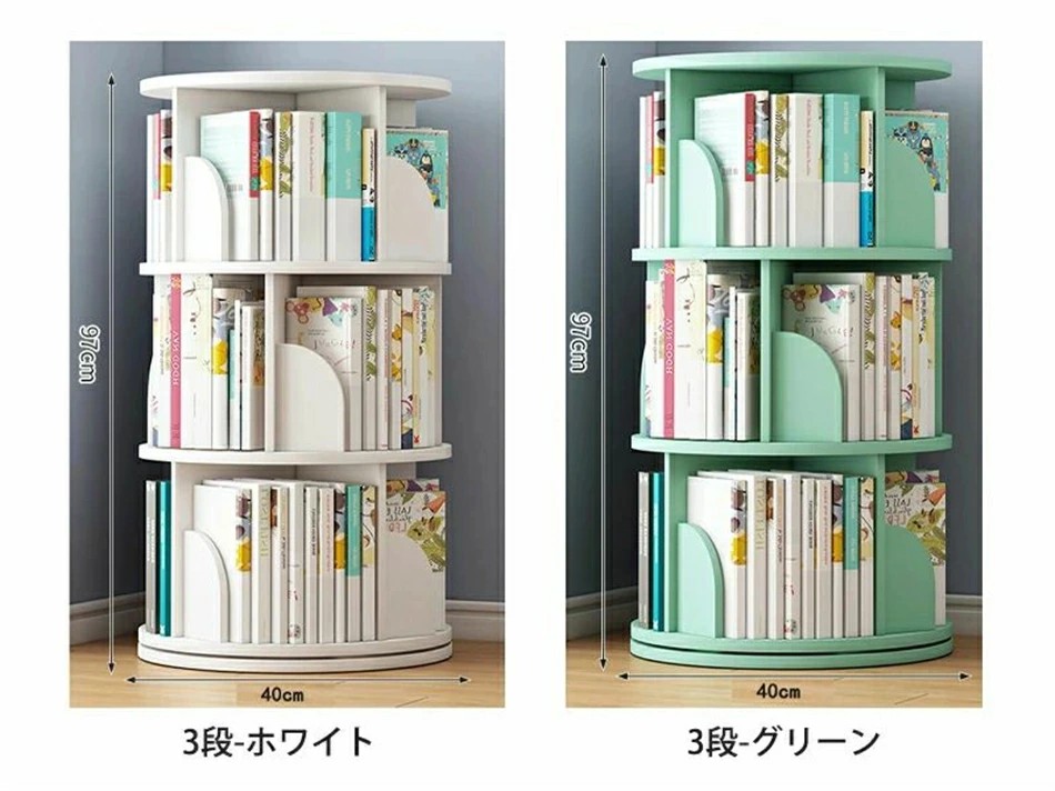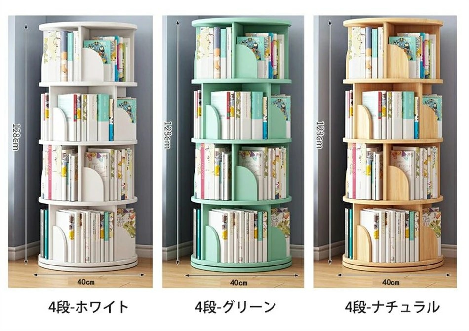 回転式本棚 絵本棚 子供 漫画 ブック ホワイト グリーン ナチュラル 2段 3段 4段 5段
