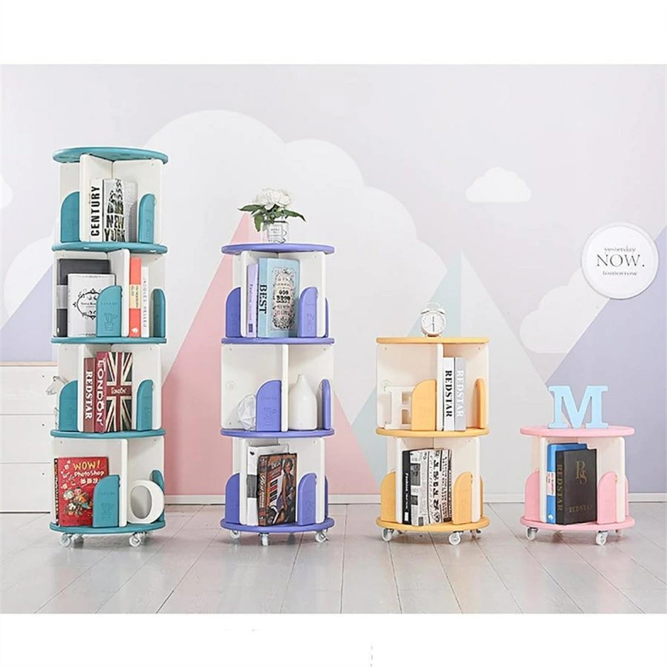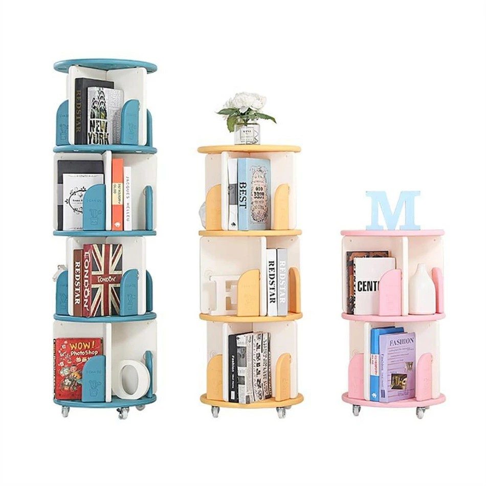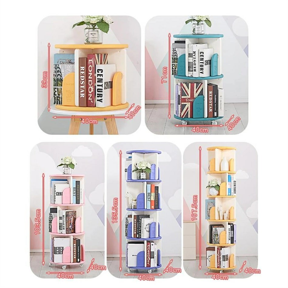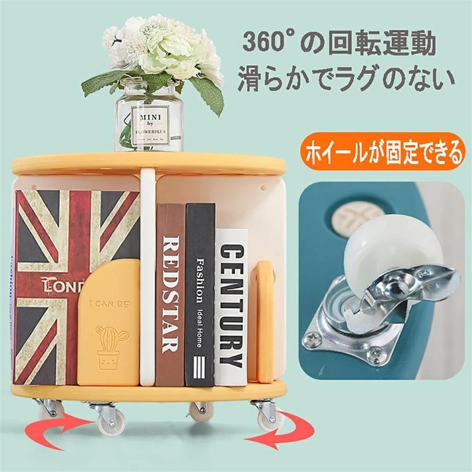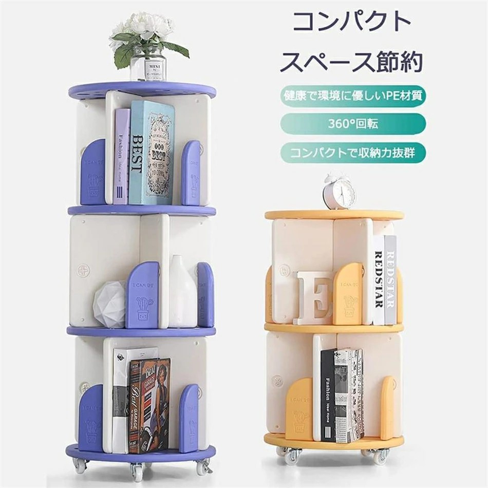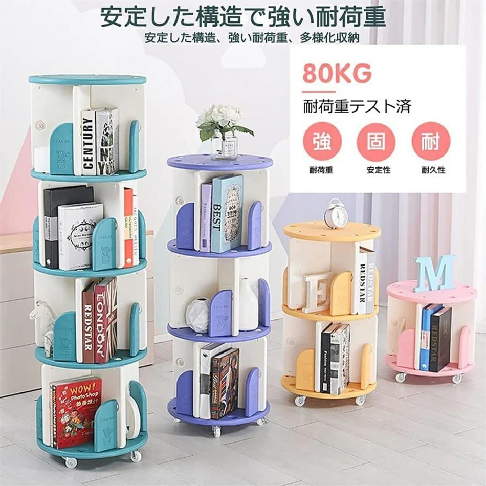 回転本棚 360°回転大容量本棚 キャ グリーン イエロー パープル ピンク 1段 2段 3段 4段
