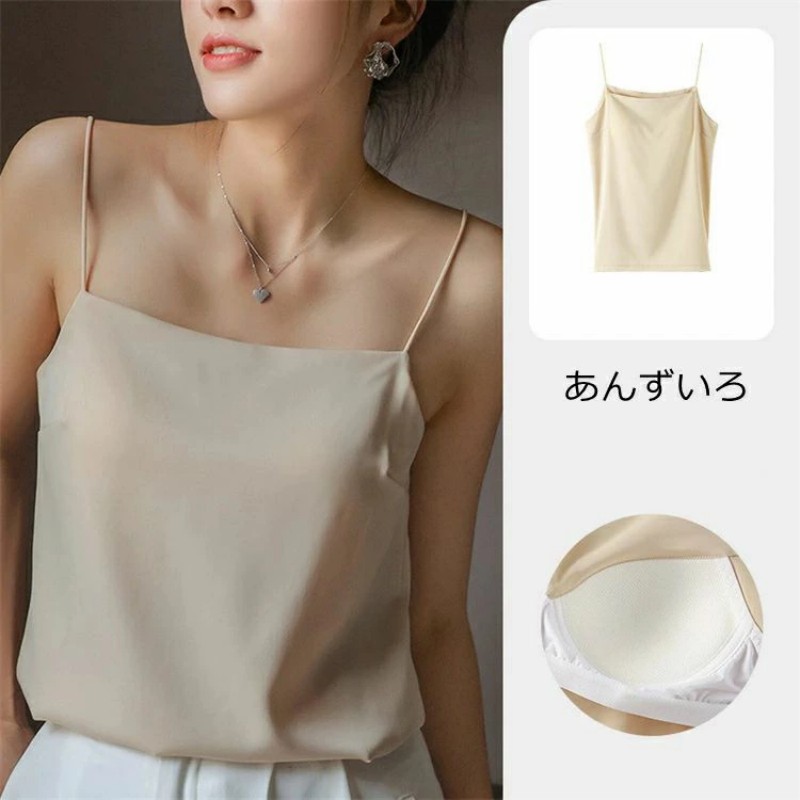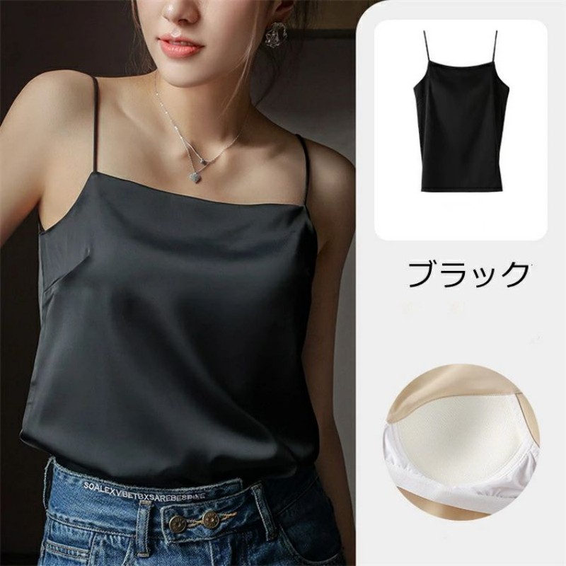 キャミソール カップ付き サテン 下着 インナー 下着 ナイトウエア 豊富 ブラック ホワイト あんずいろ S M L XL 2XL