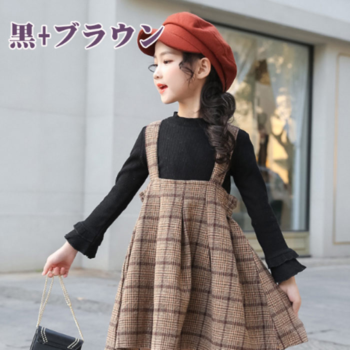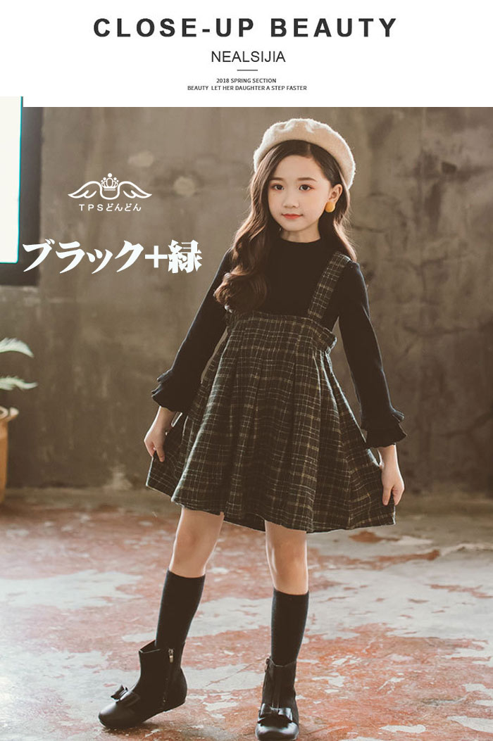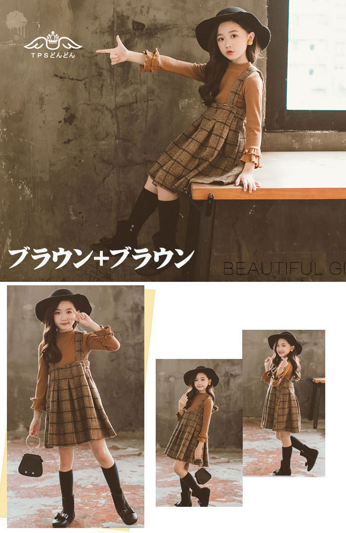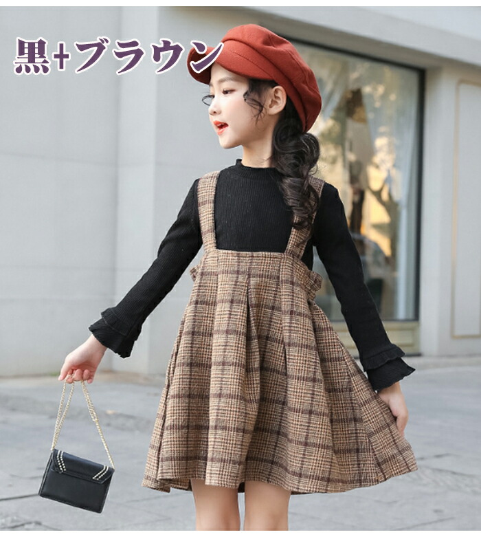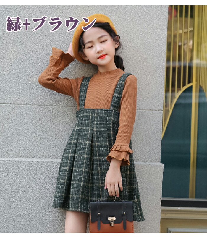 ワンピース 女の子 秋冬 韓国 子供服 キッズ ベビー マタニティ 続々入荷中 ブラウン+ブラウン ブラック+緑 黒+ブラウン 緑+ブラウン 110cm 120cm 130cm 140cm 150cm 160cm