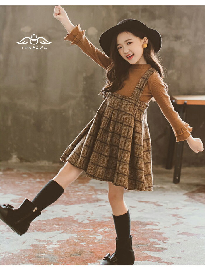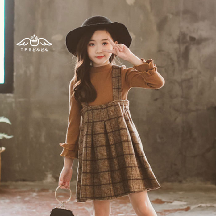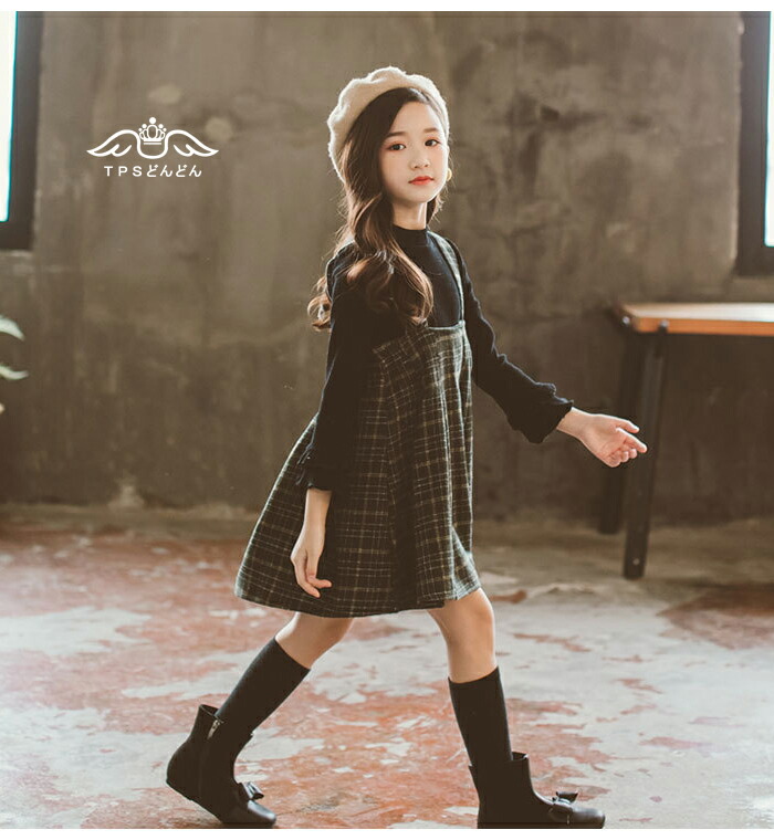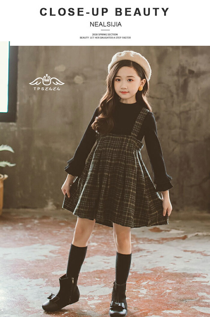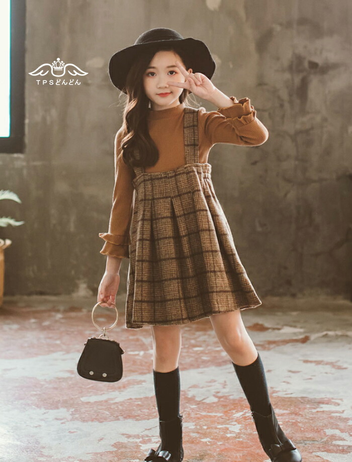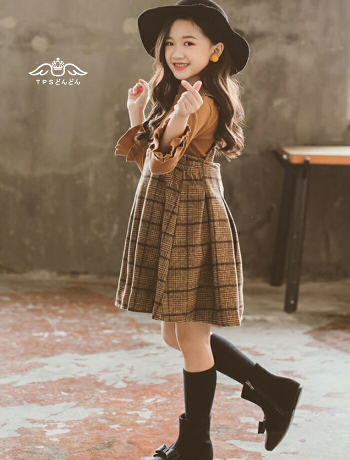 ワンピース 女の子 秋冬 韓国 子供服 キッズ ベビー マタニティ 続々入荷中 ブラウン+ブラウン ブラック+緑 黒+ブラウン 緑+ブラウン 110cm 120cm 130cm 140cm 150cm 160cm
