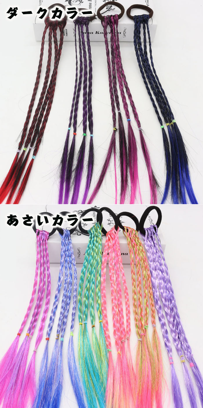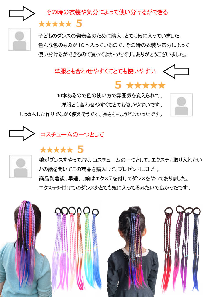 キッズダンス衣装 ヘアエクステ 10本入り ヘアアクセサリー エクステ ガールズ ヒップホップ 卒園式 ハロウィン コスプレ 子供 髪飾り ダンス髪型 ウィッグ 編み込み 10色セット グラ 三つ編み