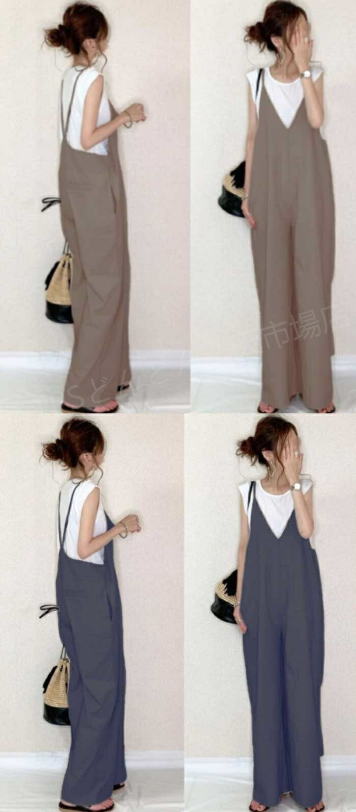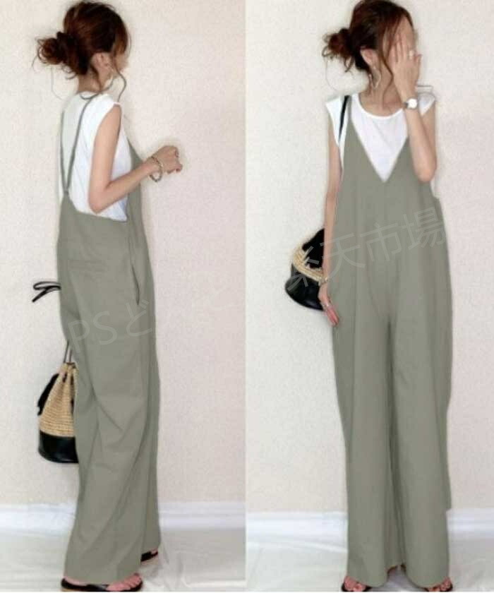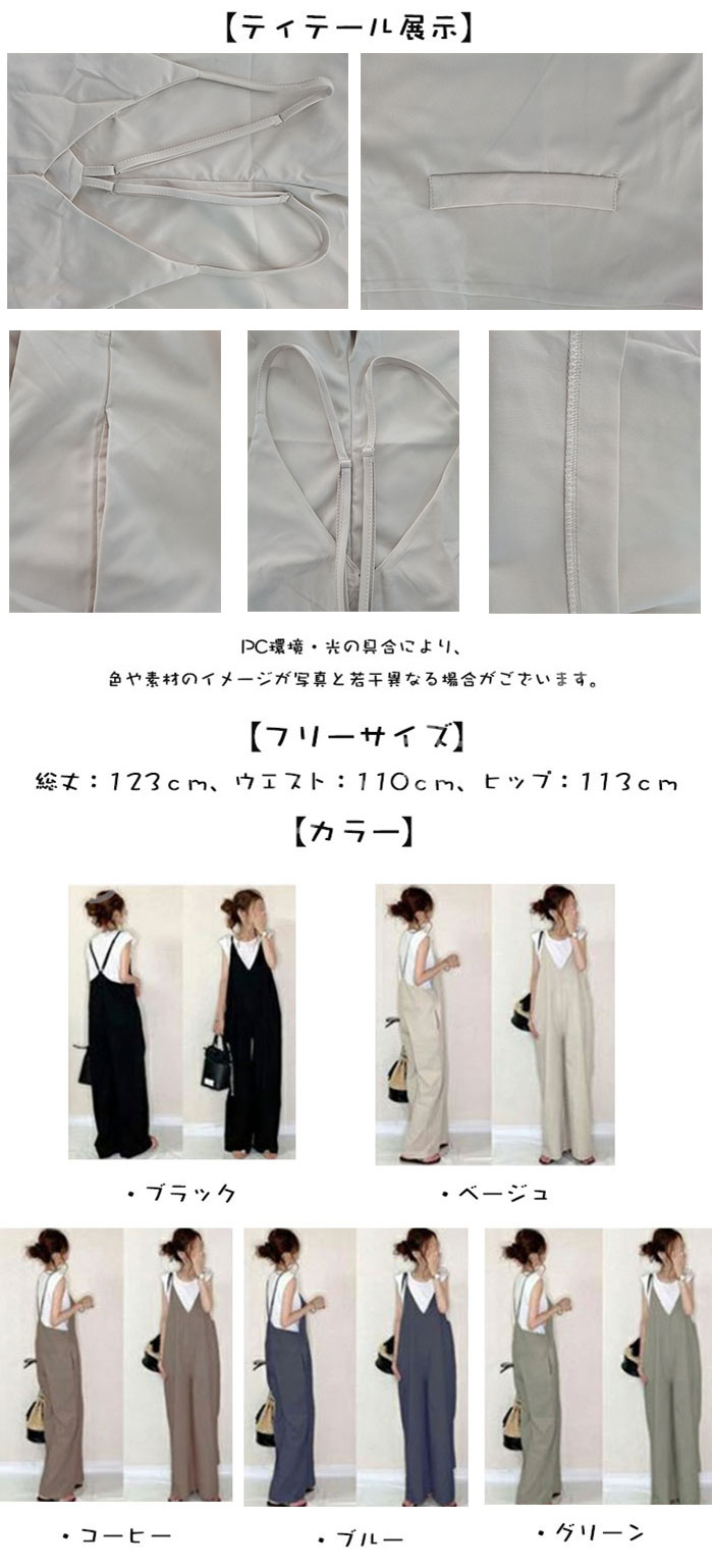 サロペット パンツ 低身長 オールイン レディースファッション 続々入荷中 ブラック ベージュ グリーン ブルー コーヒー