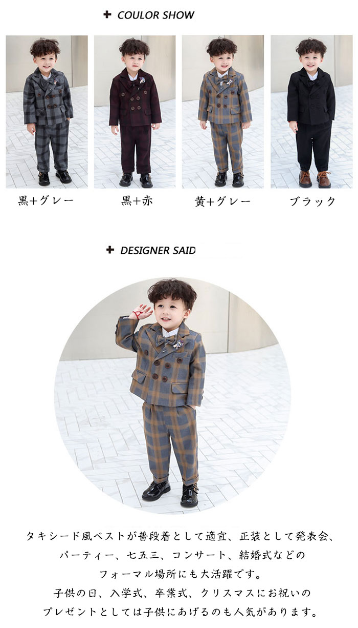 入学式 スーツ 男の子 子供スーツ 卒 キッズ スーツ カジュアルセットアップ スーツ 豊富 黒+グレー 黒+赤 黄+グレー ブラック 80cm 90cm 100cm 110cm 120cm 130cm 140cm