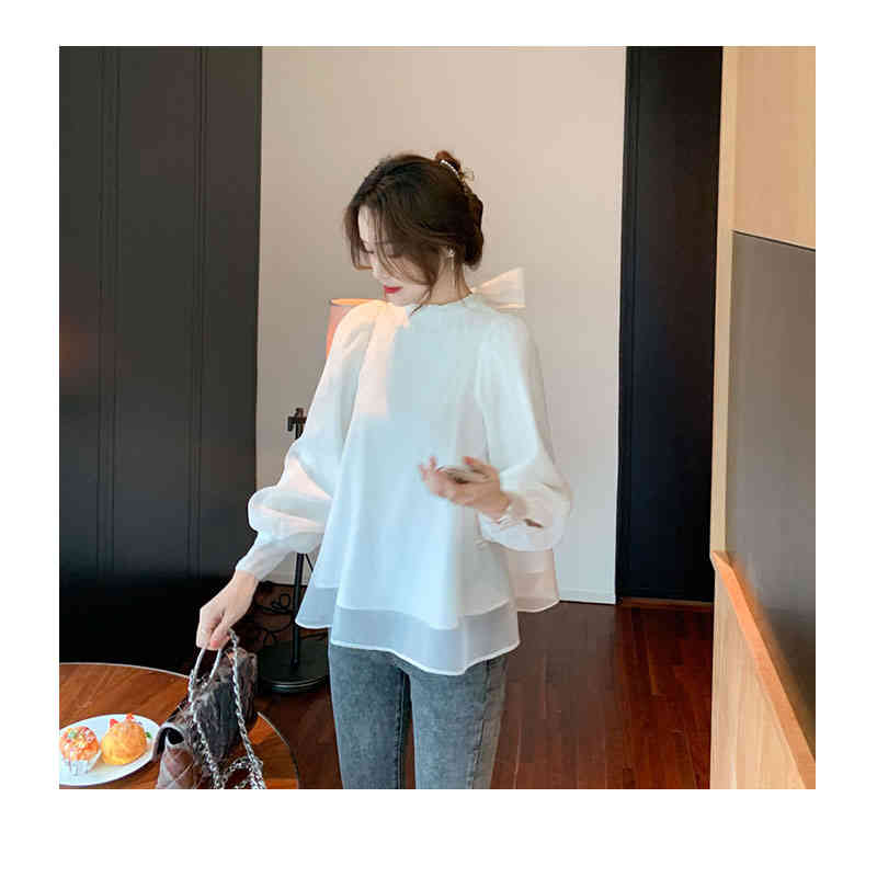 ブラウス レディース 長袖 パフスリー レディースファッション 続々登場 ホワイト ピンク S M L XL