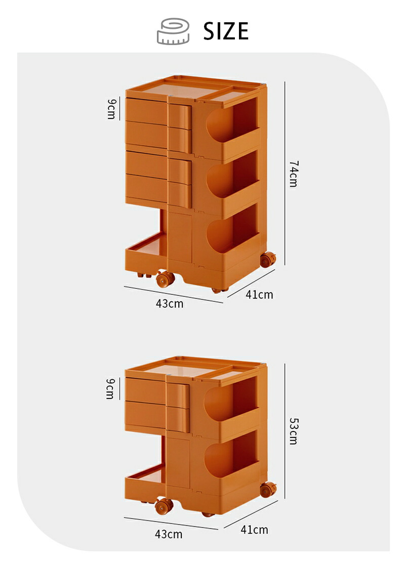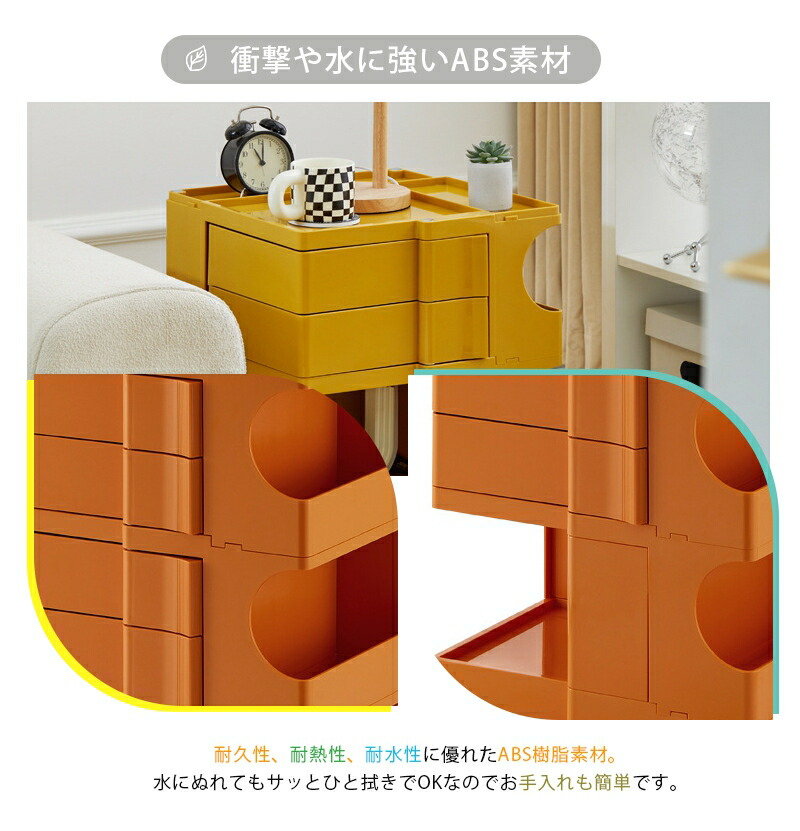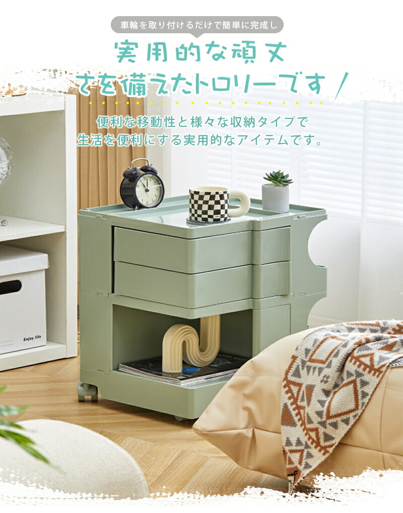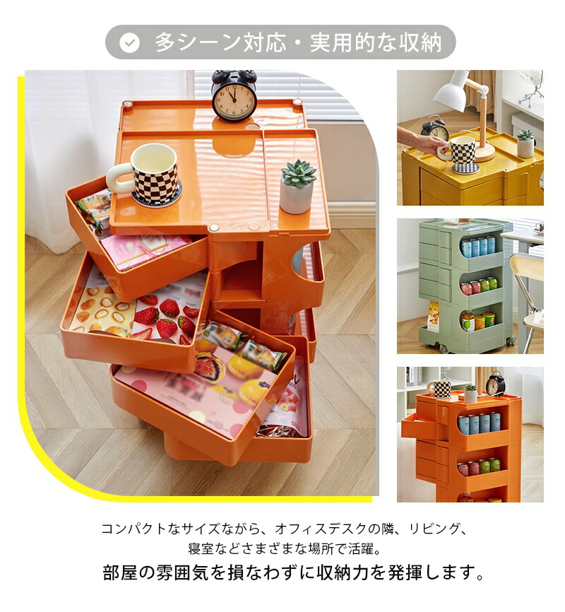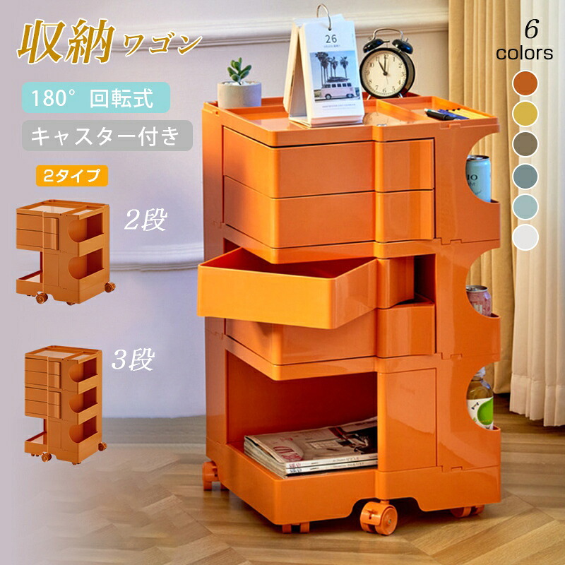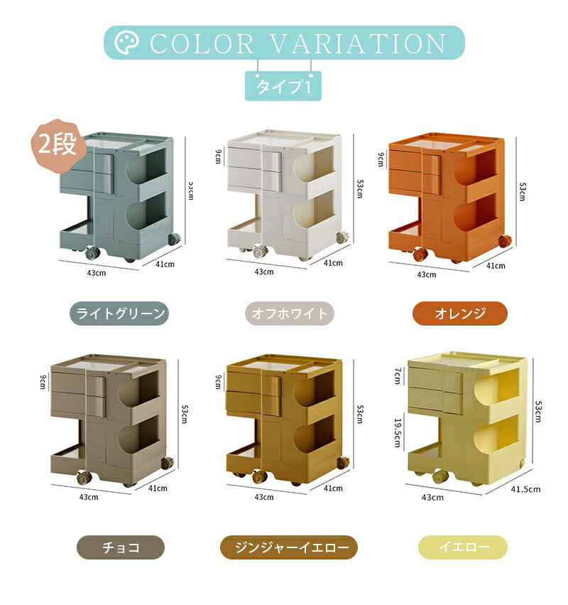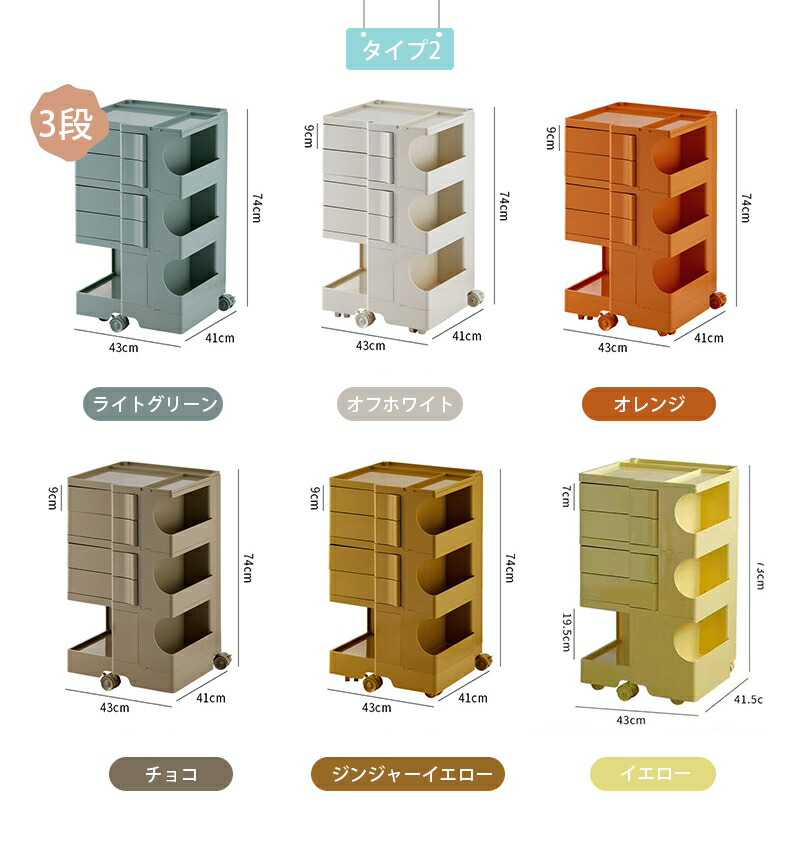 ワゴン キャスター付き おしゃれ 2段 2段 3段 ライトグリーン オフホワイト オレンジ チョコ ジンジャーイエロー イエロー