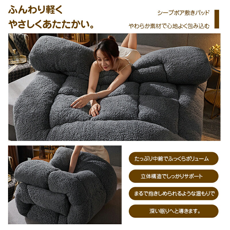 もこもこ敷きパッド シープボア敷きパッド 敷きパッド ベッドパット ラムフリース 冬 暖かい 洗える 秋冬用 しきパッド 畳 肌触り良い 短毛 吸汗 速乾 高密度 ふんわり 静電気防止 北 両面使える