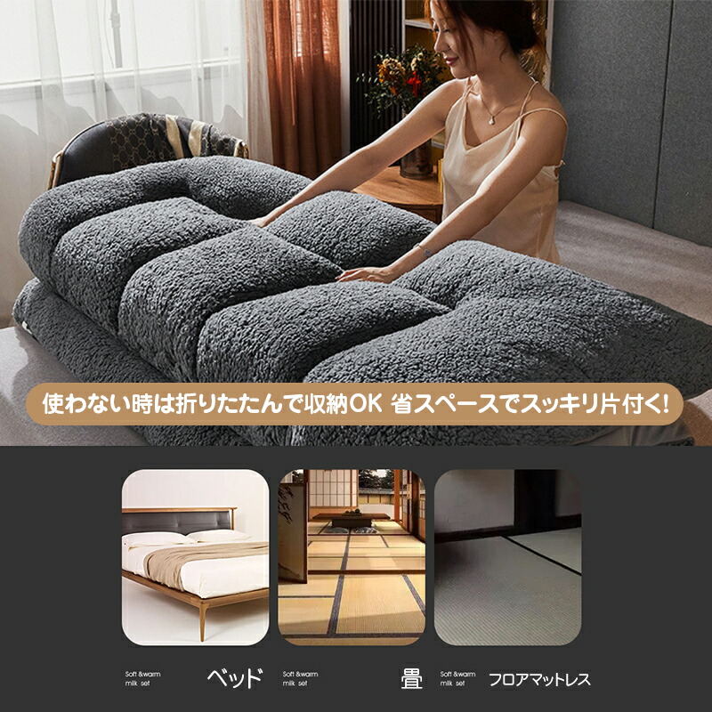 表面は秋冬に適したシュコットンフリース、裏面は春夏に最適なアイスシルク素材を使用し、一枚で四季それぞれの快適さを実現。さらに折りたたみ収納が可能で、使用しない時は簡単に角にしまえ、寝室により多くのスペースを確保できます。ベッドに敷いて睡眠体験をアップグレードしたり、和室や出窓に敷いてくつろぎスペースを作ったり、臨時のゲスト用ベッドとしても活用可能。まさに「一枚で手に入れれば、睡眠シーンを自由に切り替えられる」理想の一品です。