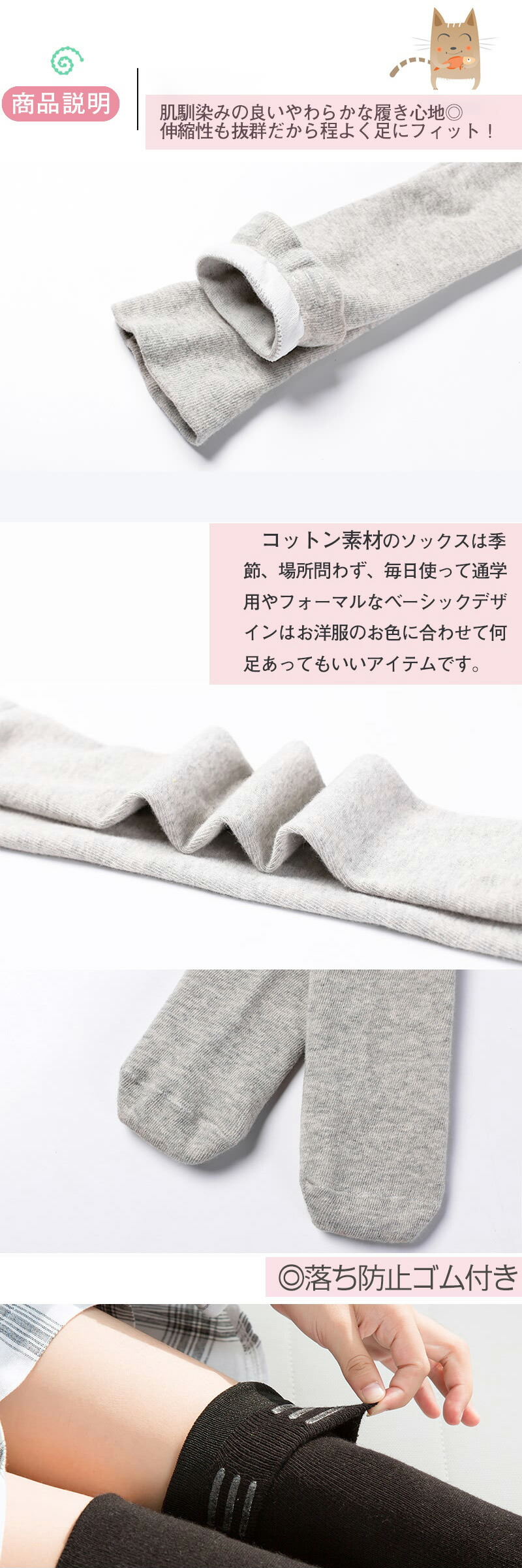 ゴム付き 女の子 制服 学生 子供 無 キッズ 靴下 タイツ 靴下 続々登場 ブラック ホワイト グレー ワイン ブラウン 2足(黒*2) 2足(黒*1灰*1) 2足(黒*1白*1) 3足(黒*1白*1灰*1) 4足(黒*1白*1灰*1茶色*1)