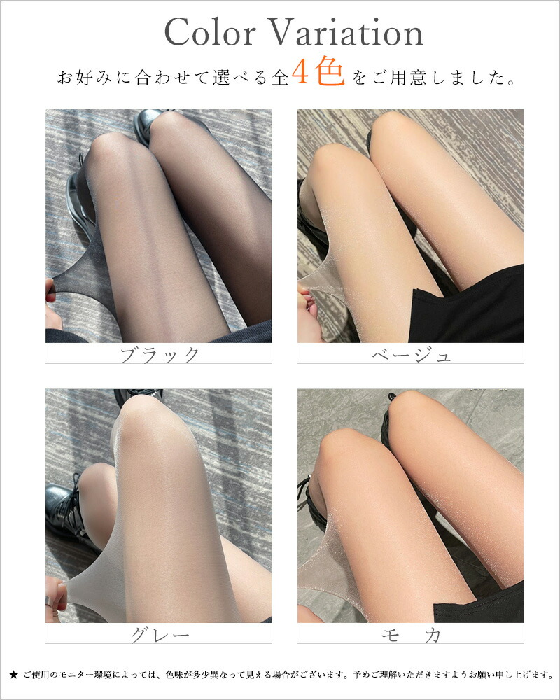 :ナチュラルな透け感が脚を細く長く見せ、スタイルアップ効果も期待できます。