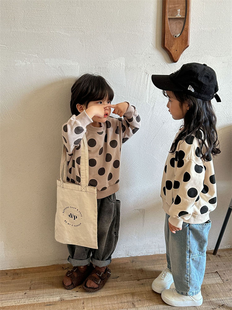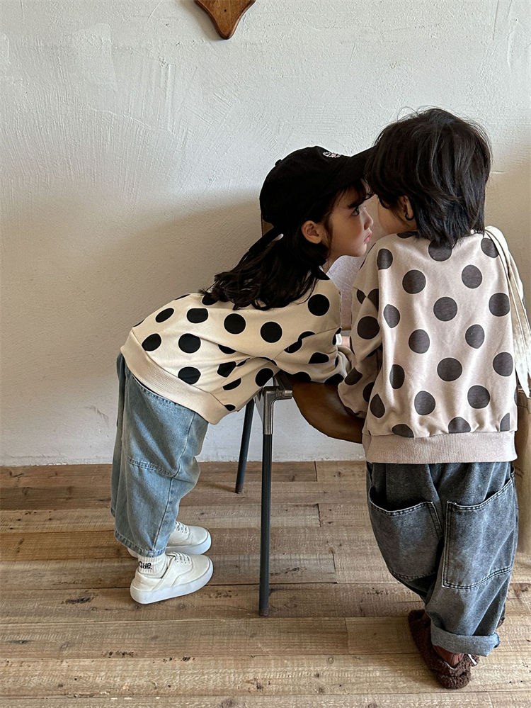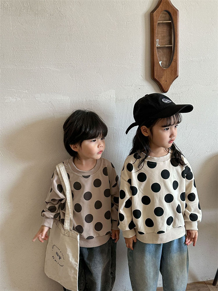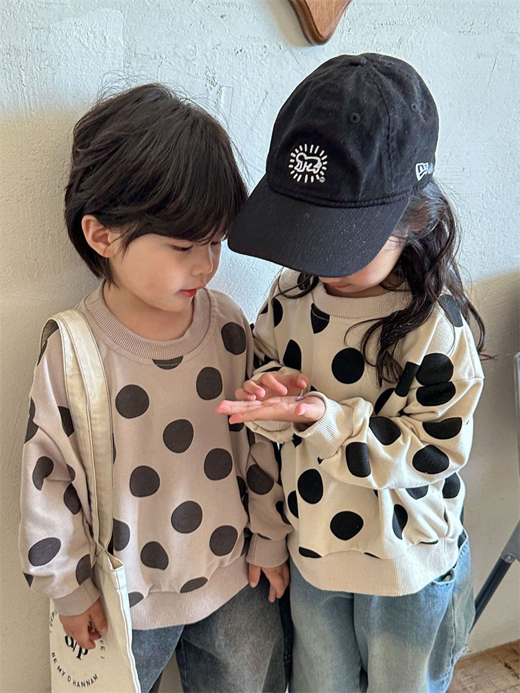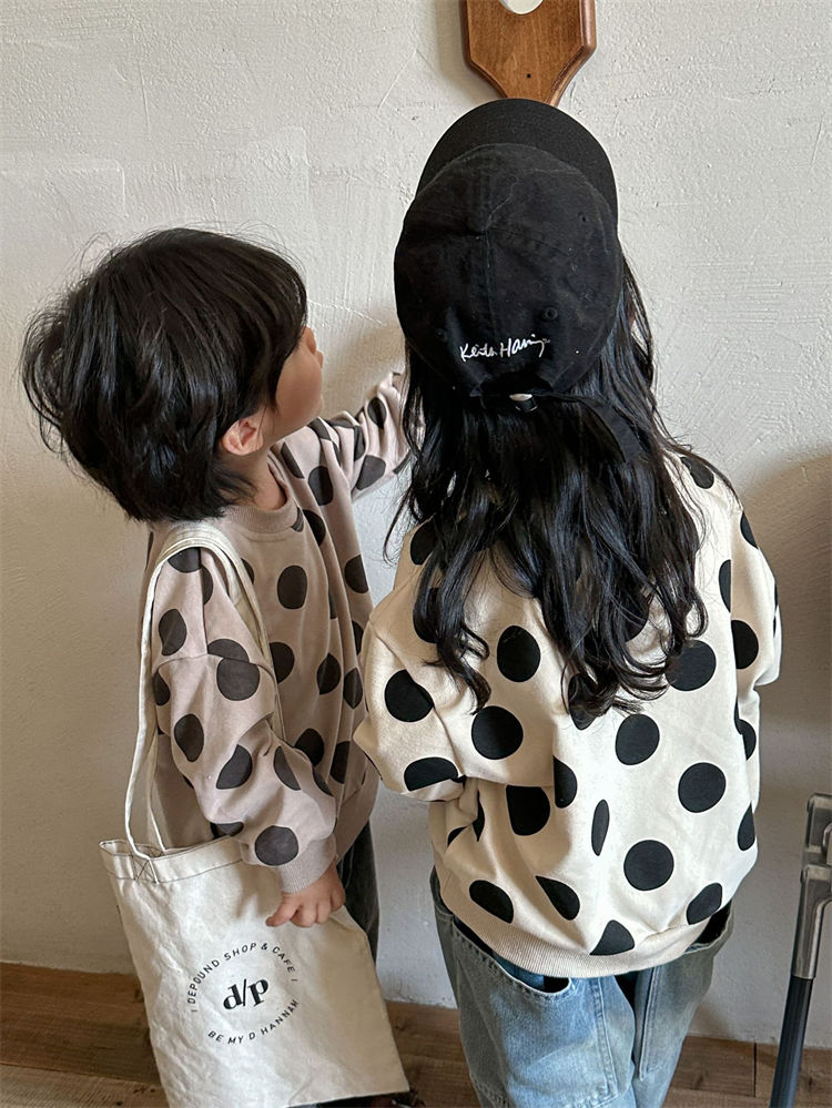水玉 兄妹お揃い 長袖シャツ 兄弟 姉 キッズ ベビー マタニティ 豊富な品揃え ベージュ コーヒー色 80 90 100 110 120 130 140 150